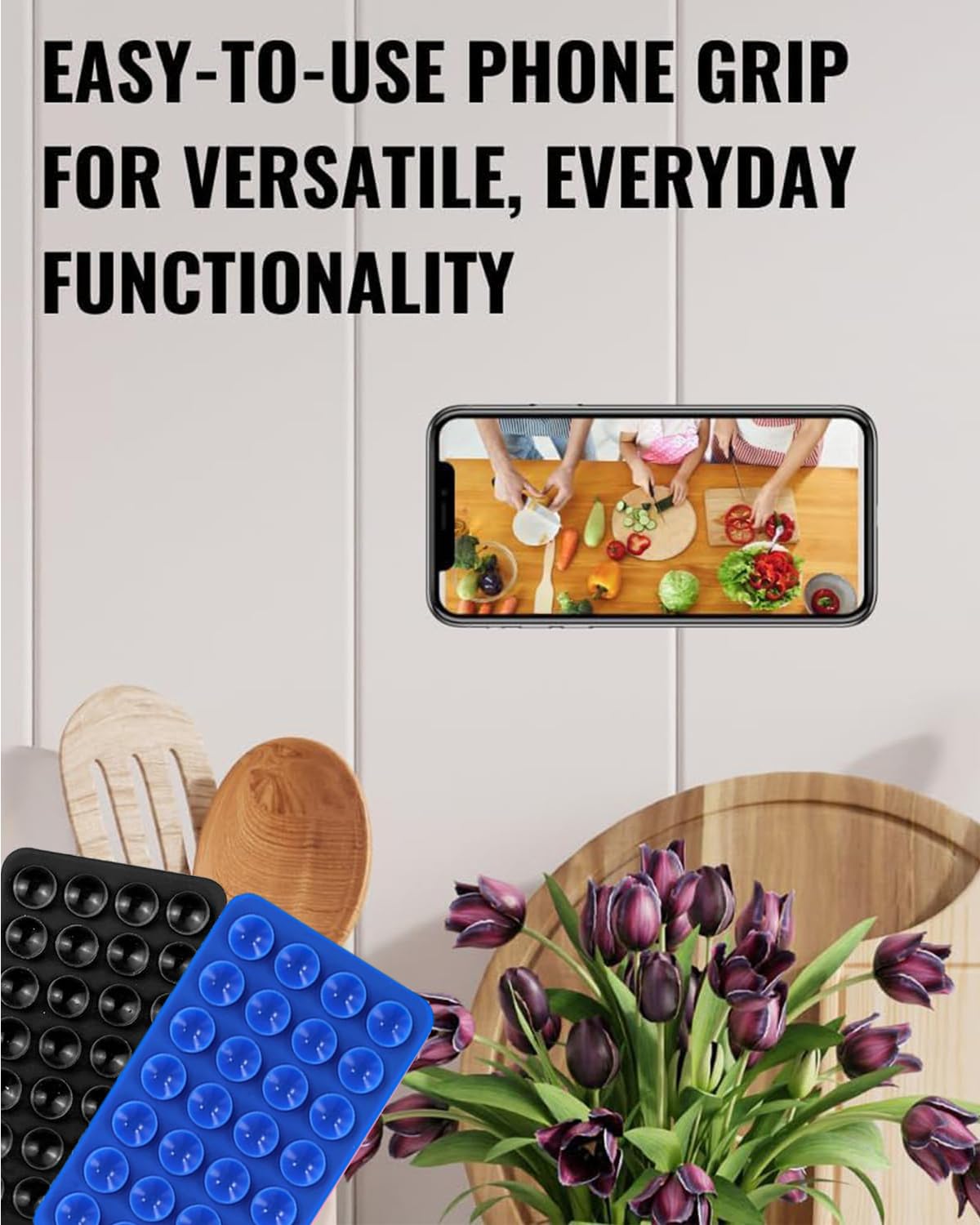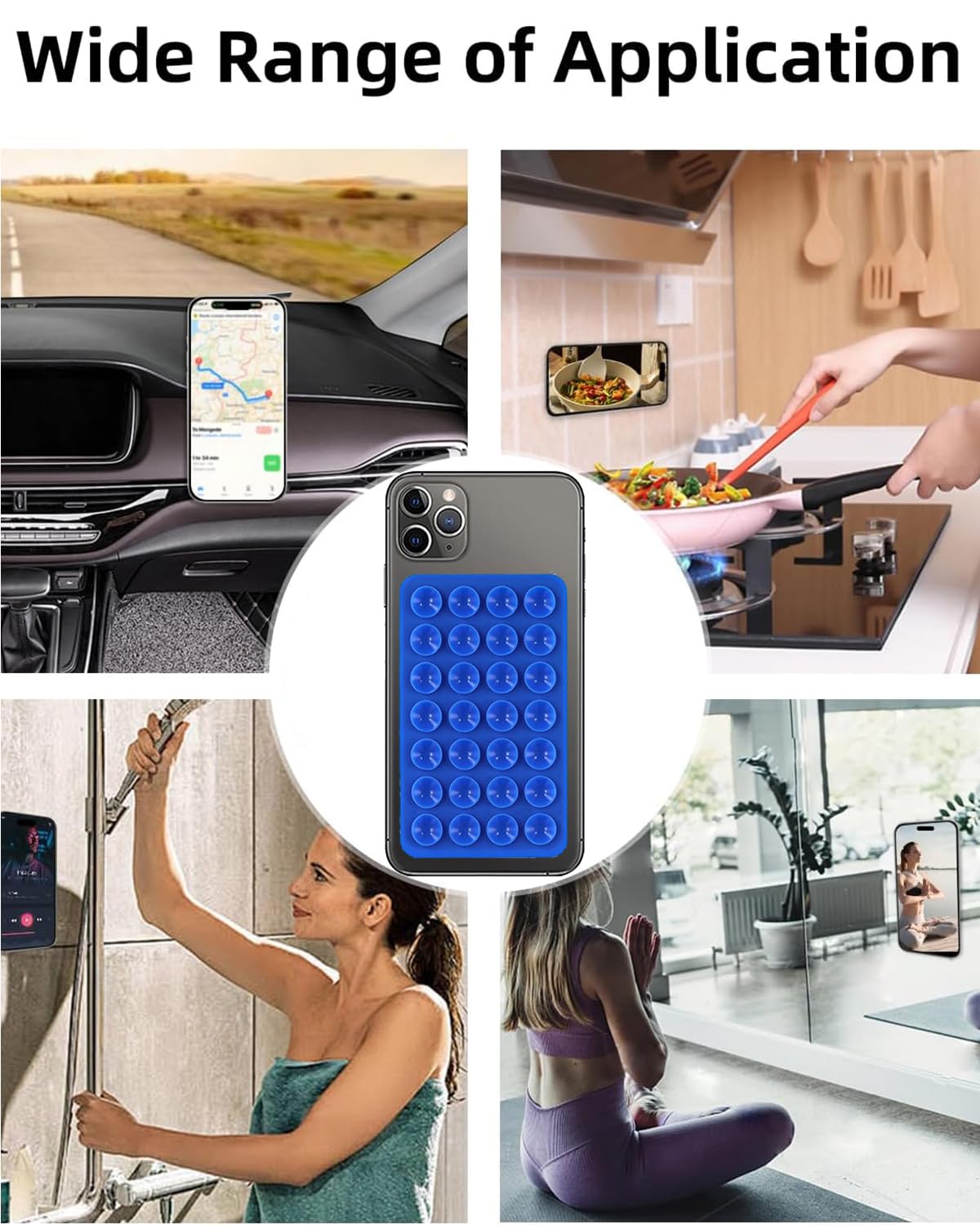 3 PCS Silicone Suction Phone Case (Reusable), Suction Phone Case, Hands-Free Mobile Accessory Holder Grip, For Mobile Phones, Hard Disk, Power Bank (28 Small Suction Cups, Double-Sided) 【Package Content】You will receive 3 different colors of silicone suction phone case, which you can choose to use in your preferred color. 【Reliable Material】This silicone suction phone case is made of high-quality materials and is durable. Each suction cup has sufficient suction force. The size of suction phone case pad is 93 * 55mm. 【Strong Support】Each side of the suction phone case has 28 independent small suction cups, and the perfect contact area can provide stronger and more reliable support for mobile phones, so you don’t have to worry about the phone falling. 【Ideal Accessories】Suction phone case at your fingertips helps you capture content on a whim, in a grocery store, at your vanity with a snatched look, or simply chatting with family, make our hands-free accessory a part of your content creator kit! 【Widely Used】With our suction phone case, you can now stick your phone to any flat surface. Capture great shots with less worry of phone drops while you’re video-streaming, recording, selfies, content-creating, vlogging or whatever creative ways you can think.