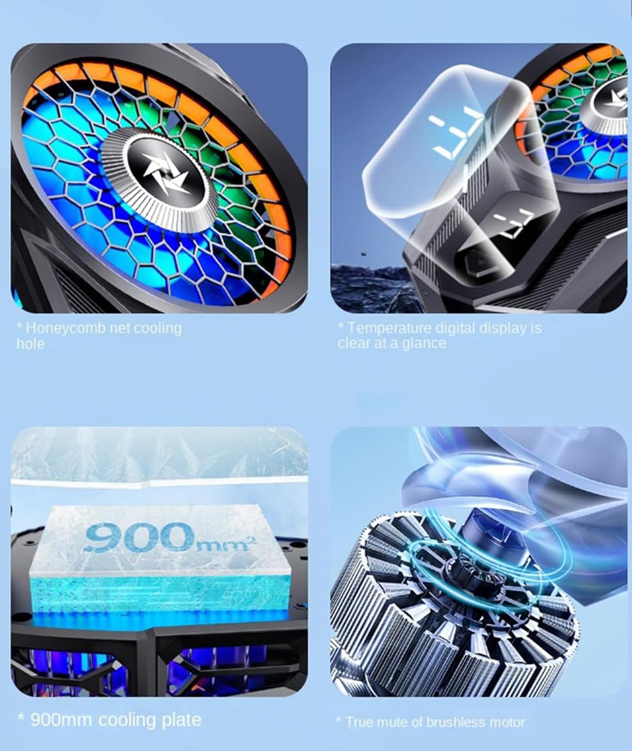 The mobile cooler radiator adopts a 25db noise reduction design. The gaming mobile cooler fan is silent and wont impact your game play or movie watching marathons. The mobile cooler for gaming is compact, lightweight design, and blue LEDs embedded beneath the phone cooling fan bring you a greater style and gaming immersion no matter where you are.