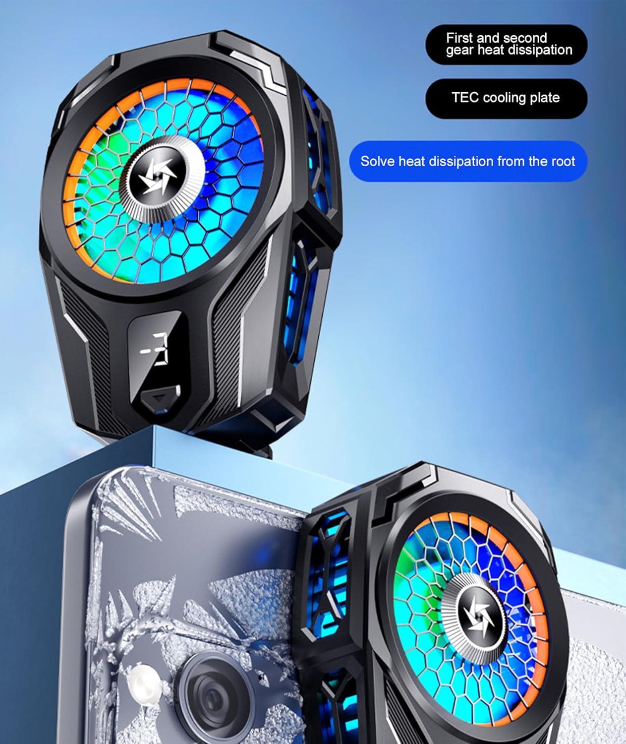 Phone Cooler: Play games and live stream for hours without worrying about overheating. Designed for mobile gamers, live streamers, bloggers, and others who use devices for extended periods. The phone cooling case can cool your device in seconds and keep it at a suitable temperature.