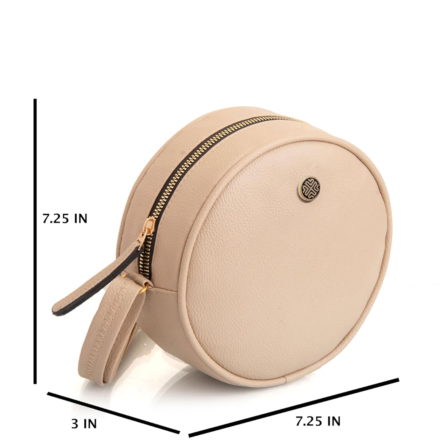 This classic round solid color leather textures PU sling bag from Sacci Mucci makes a stylish everyday companion. With its top zip closure and adjustable shoulder strap, this bag is comfortable to carry yet keeps your belongings securely held. The spacious main compartment provides plenty of room for daily essentials while the interior slit pocket helps keep small items well-organized. Available in a bright pop of color, this bag enlivens any outfit with a splash of color. Subtle textured details emulate real leather without the cost. Lightweight and durable, this sling bag is perfect for all your on-the-go needs.