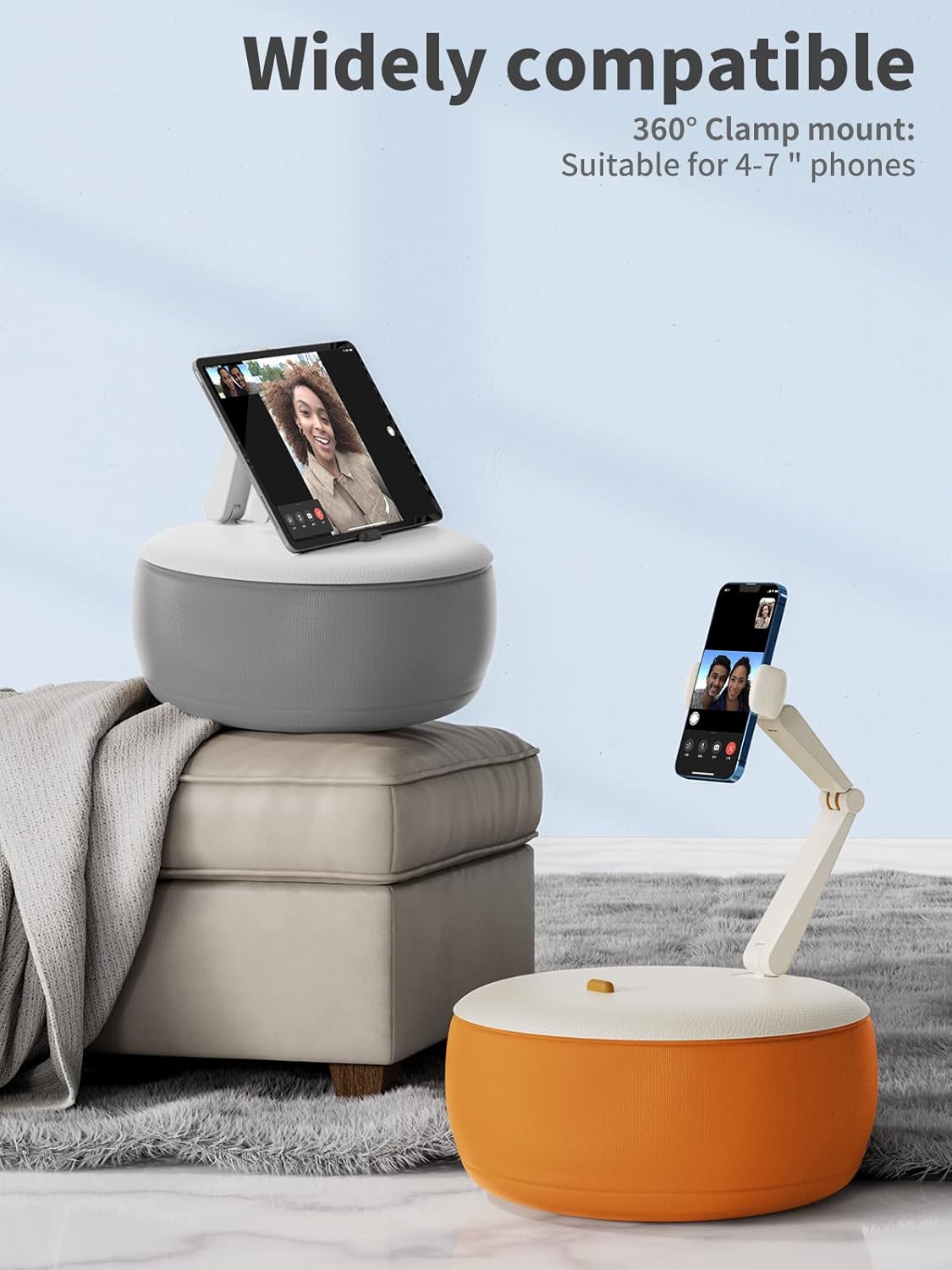 【Wide Compatibility】This pillow phone stand clamp can support 4.7-7” devices, including almost all smartphones, like iPhone 12 Mini, 12, 11, 11 Pro Max, SE, XS, Galaxy S20, Note 20 Ultra, S10 S9 LG, Google Pixel. The Recumbent support 7.9-12. 9” devices, such as new iPad Air 4, 2020 iPad Pro 11 / 12.9 inch, 2018 iPad Pro 10.5 inch, iPad Air, iPad Mini, etc.