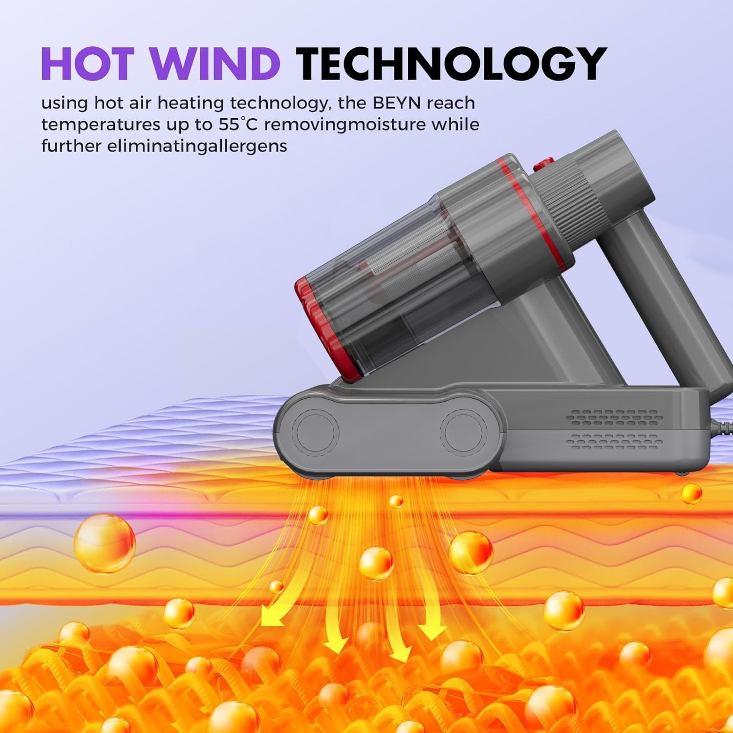 12kPa Strong Suction Power – Effectively removes embedded dust, hair, and mites from beds, sofas, and cushions