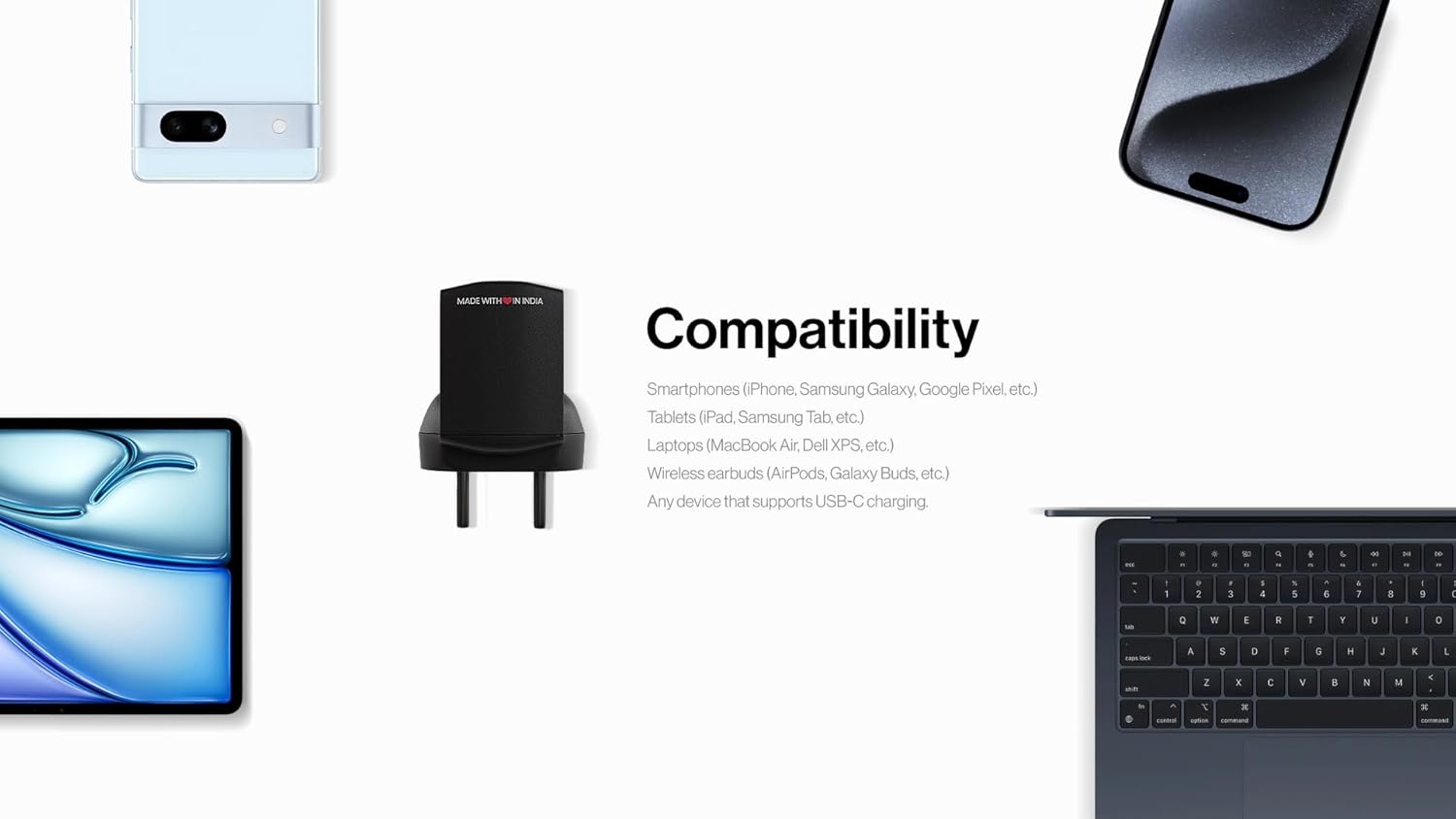 GAN Technology:GaN chargers are 3X better than silicon chargers, smaller, portable & charge upto 10X faster. They generate much less heat.