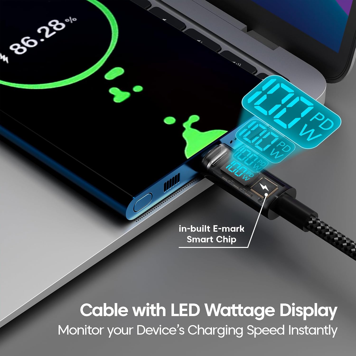 ✅【LED Wattage Display】: The USB cable features an LED wattage display to show real-time charging speed, so you can monitor if your device is charging quickly and at what rate. Equipped with an E-mark smart chip, it intelligently adjusts voltage and current, ensuring safe, fast charging without risking battery damage.