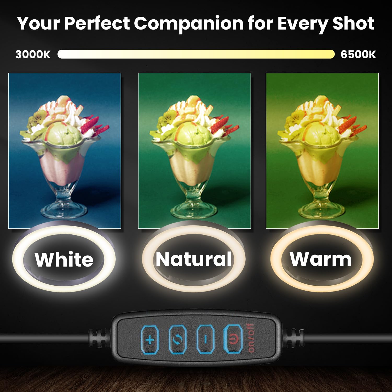Built-In Ring Light – Comes with a detachable LED ring light for even, soft lighting. Enhance video clarity during shoots, live streams, or virtual meetings—no extra lights needed.