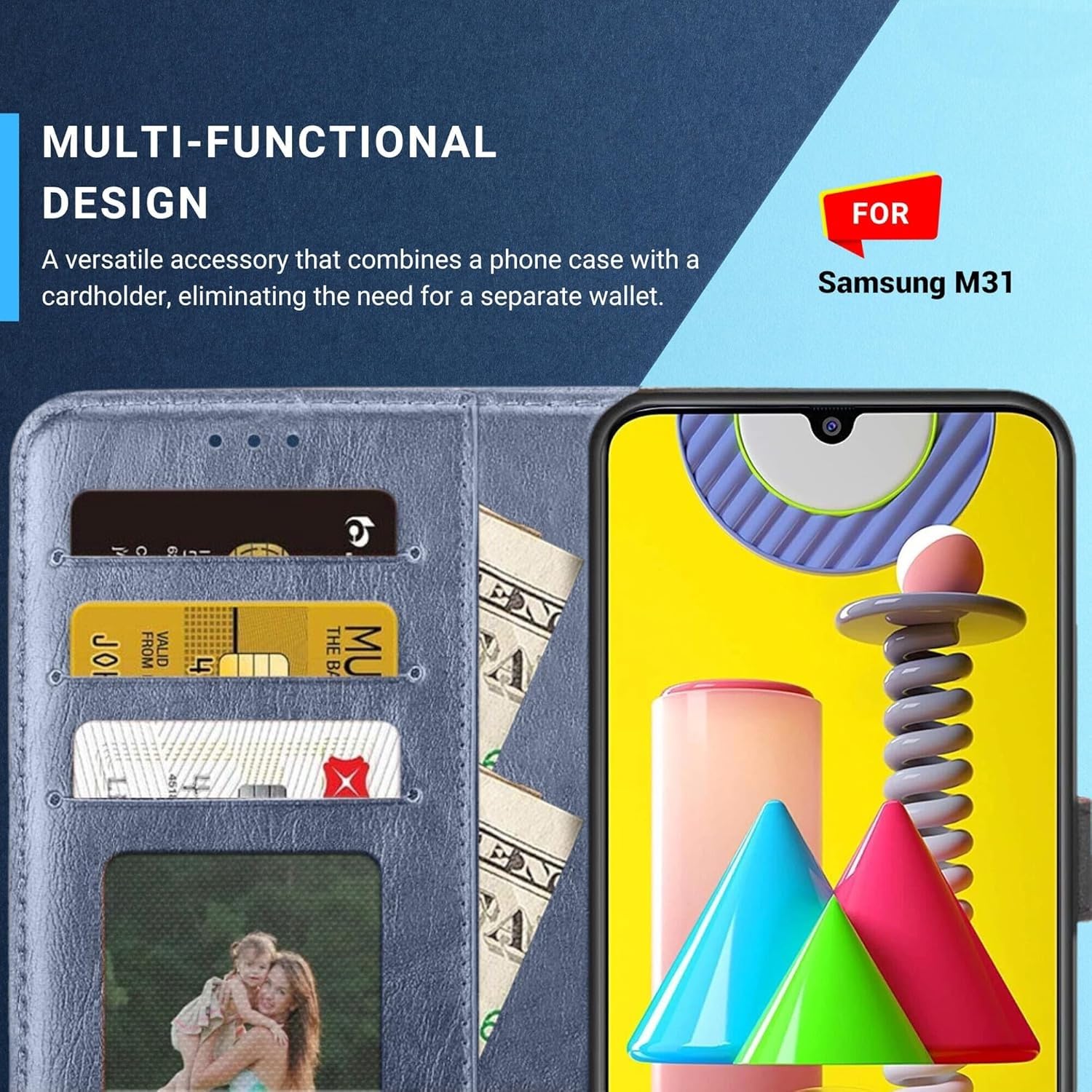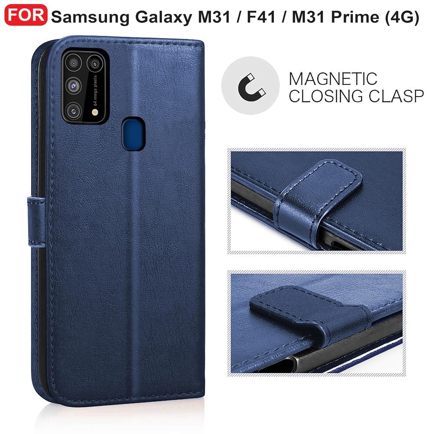 PRACTICAL STYLISH DESIGN – With 3 cardholder slots and a cash pocket, you can easily carry your ID, credit cards, driver’s license, and cash. The stand function is perfect for video chatting and watching films, adding convenience to your daily use.PRECISE CUSTOUTS – This case offers easy access to all ports, controls, and buttons without needing to remove it. It’s designed for easy installation and removal, ensuring a hassle-free experience.PREMIUM MATERIAL – Crafted from premium leather and a durable TPU inner bumper, the case provides a comfortable touch and a pleasing look. The reinforced stitching enhances durability and adds an extra layer of protection.360 DEGREE PROTECTION – The case covers all sides and corners of your phone, safeguarding it from dust, scratches, bumps, and daily wear and tear. The strong hidden magnetic closure keeps the case securely closed, offering perfect screen protection.MADE FOR – Designed and Handcrafted Flip Mobile cover for – Samsung Galaxy M31 / F41 / M31 Prime