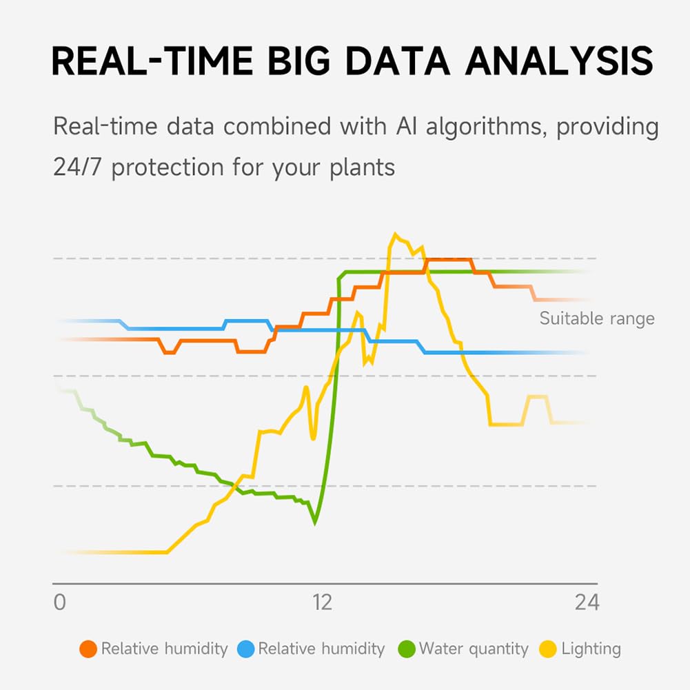 【Intelligent maintenance assistant】Usually we are worried about the maintenance of plant survival, the smart planter is equipped with 7 kinds of multi-dimensional sensors specifically for plants to help us protect the health of plants to the maximum extent.
