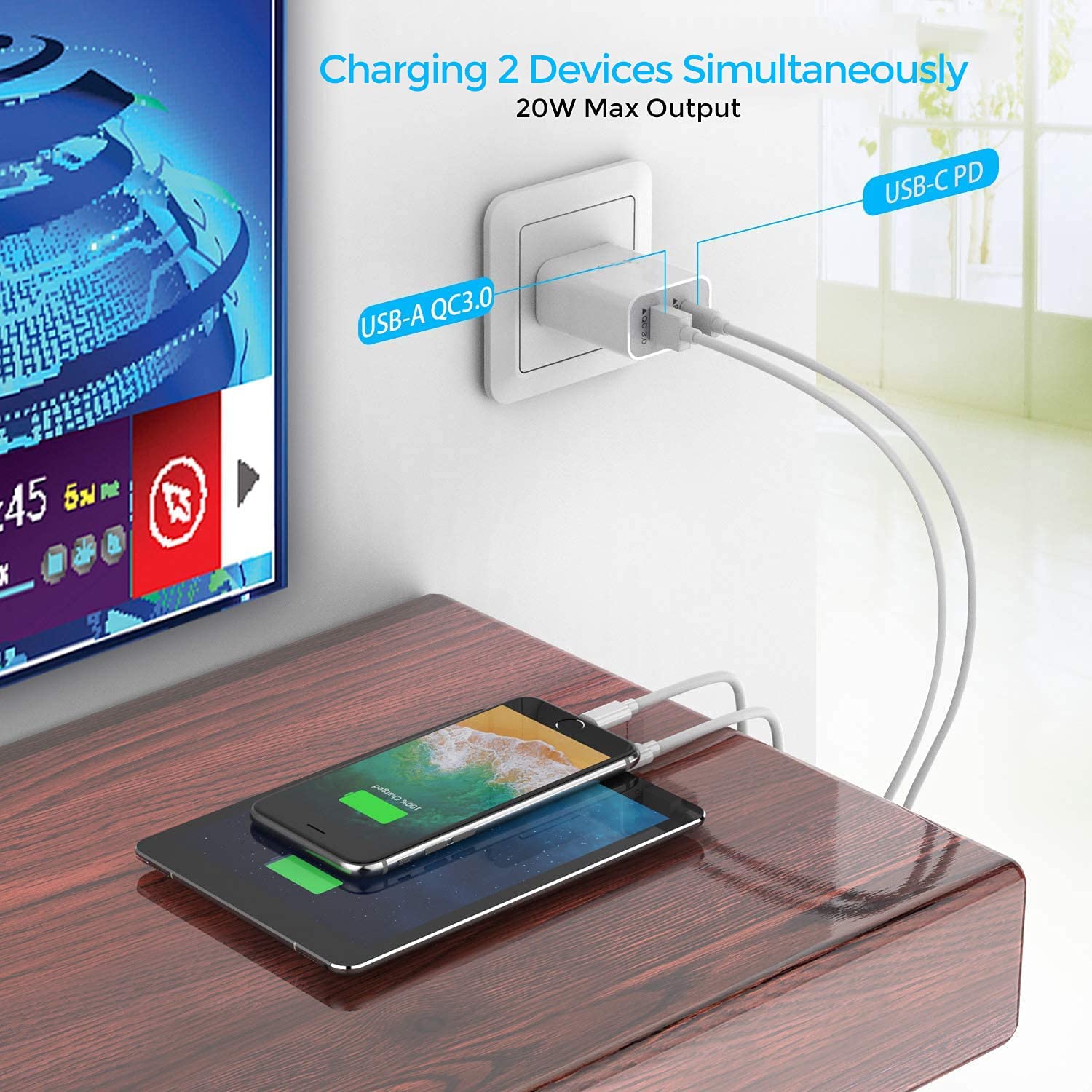 What You Get: 20W PD/18W QC Dual Port USB Charger White.