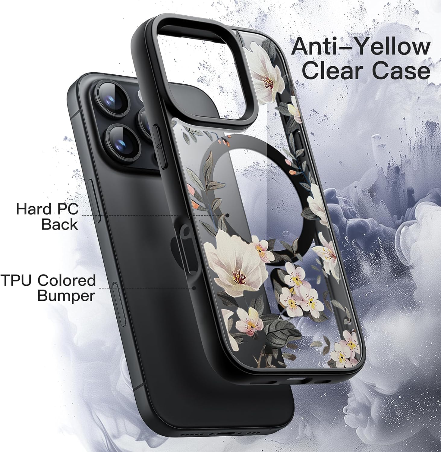 🌺【Stylish Bling Design】 The sparkling diamond-like colorful vintage Magnatic floral flower design makes your phone so pretty. The cute wavy border design makes your phone more fashionable and eye-catching.