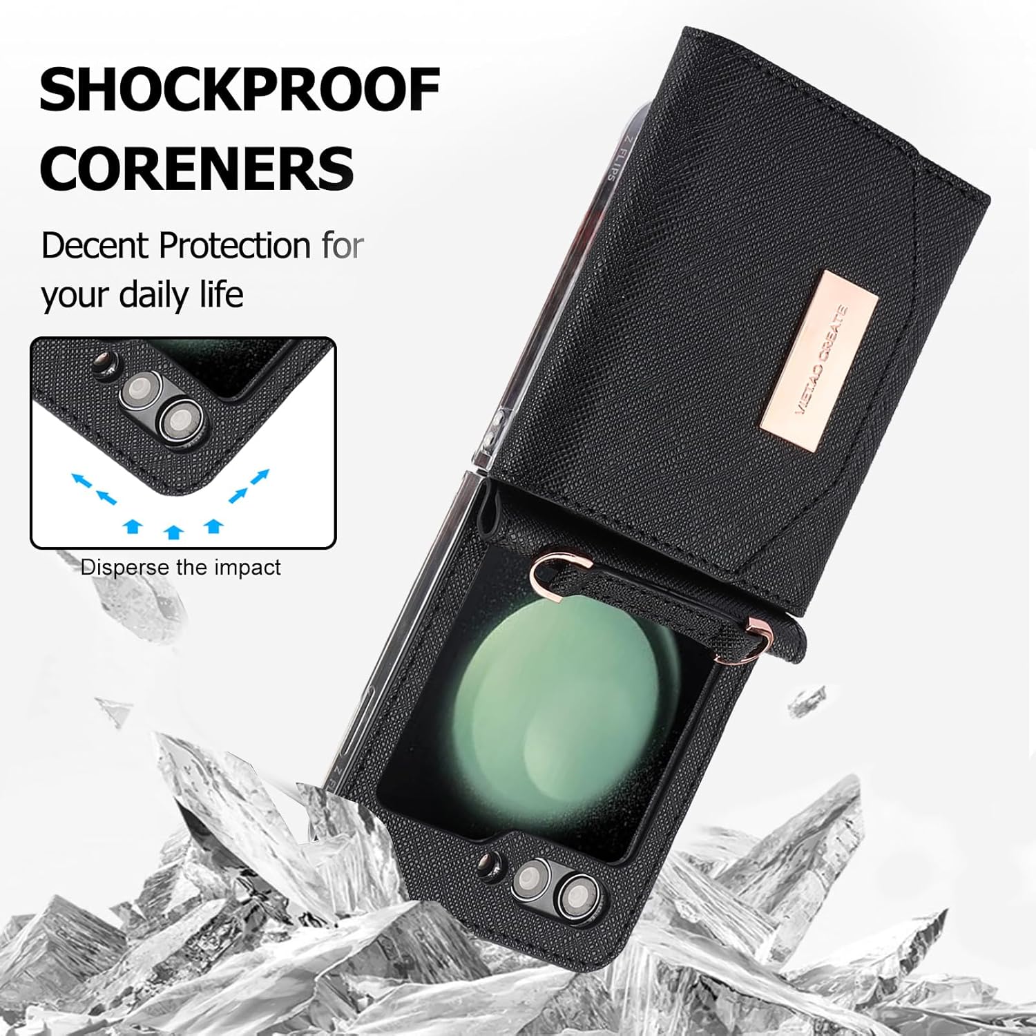 【Built-in Wallet】 This Samsung Z Flip 6 case includes 4 card slots and 1 cash slot, offering storage for ID cards, credit cards, and cash. With its all-in-one design, this purse case eliminates the need for a bulky wallet. Perfect for shopping, walks, business trips, or everyday use.