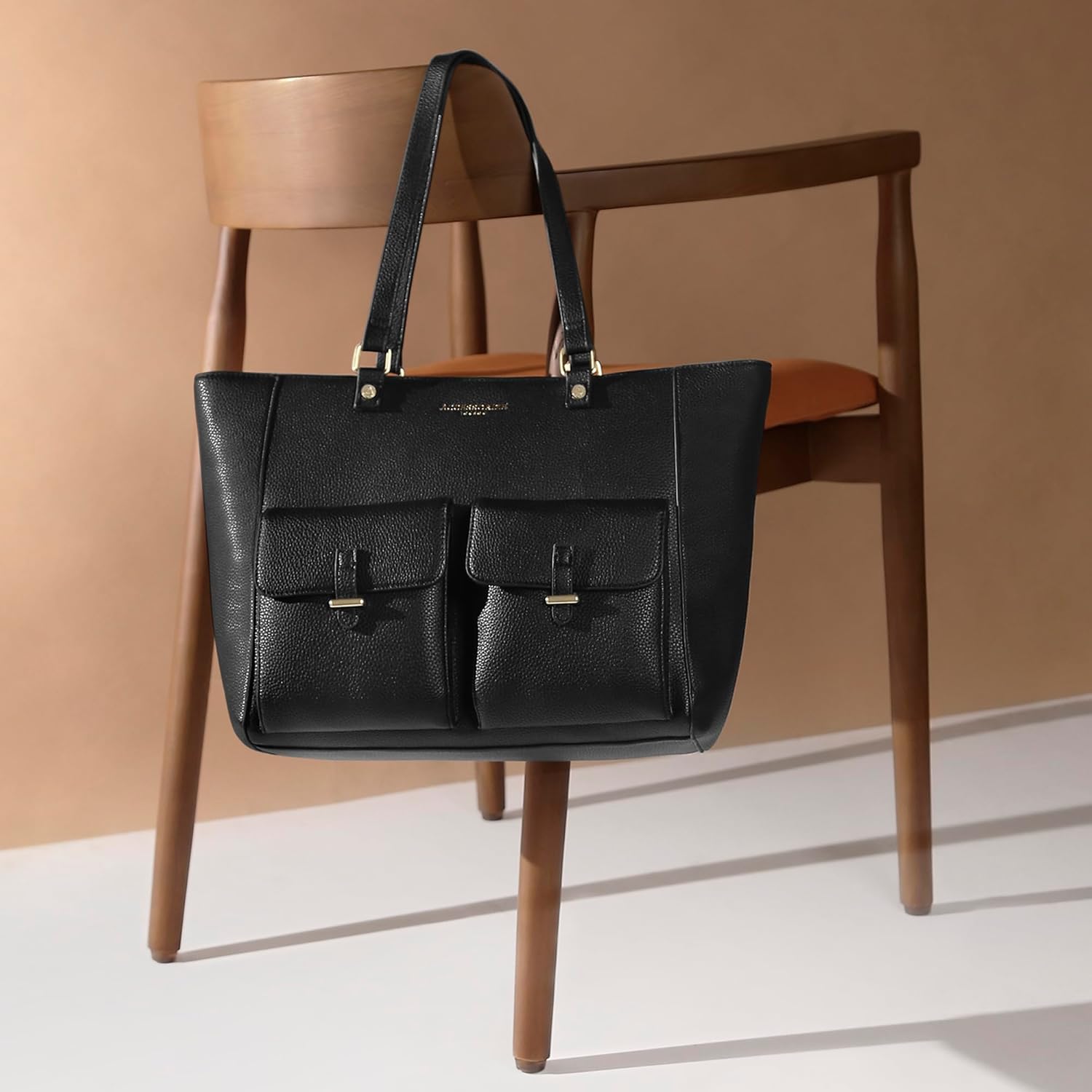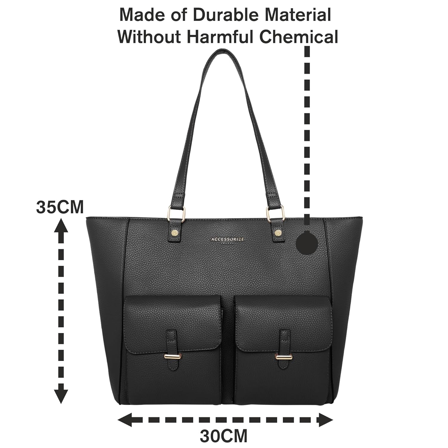 Accessorize London Women’s Dana Structured Spacious Tote bag with Flap Pocket| Shoulder Bags for women | Ladies Purse Handbag