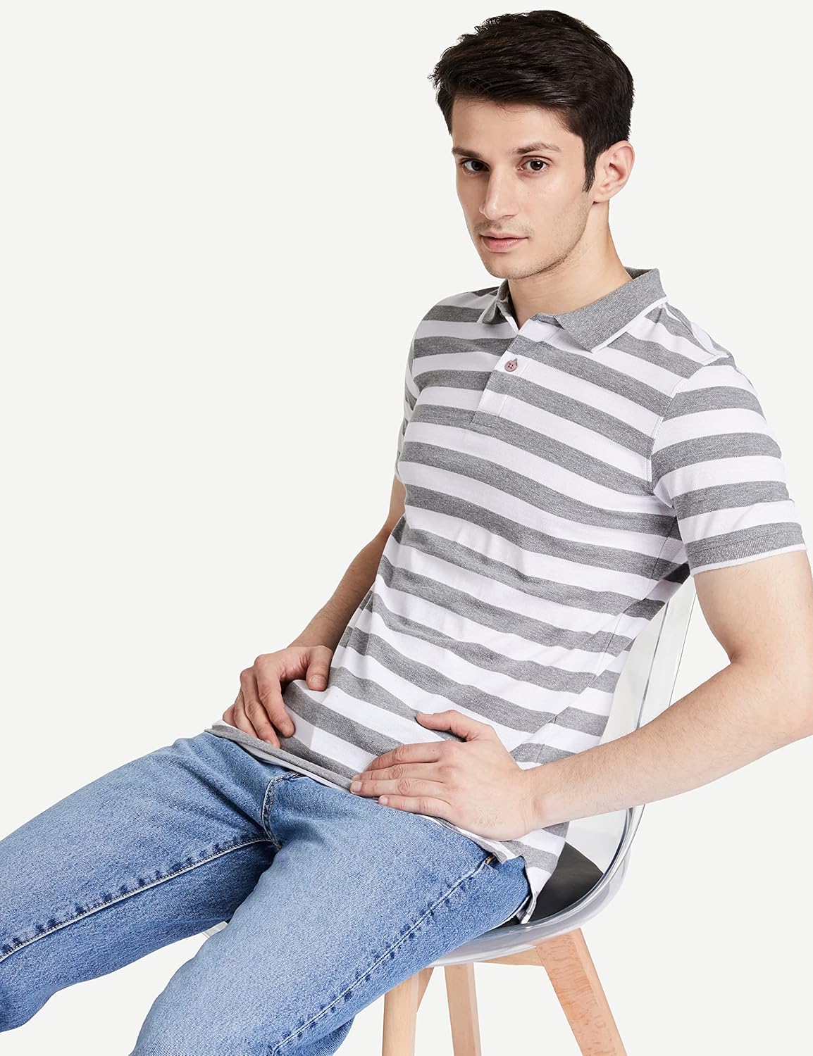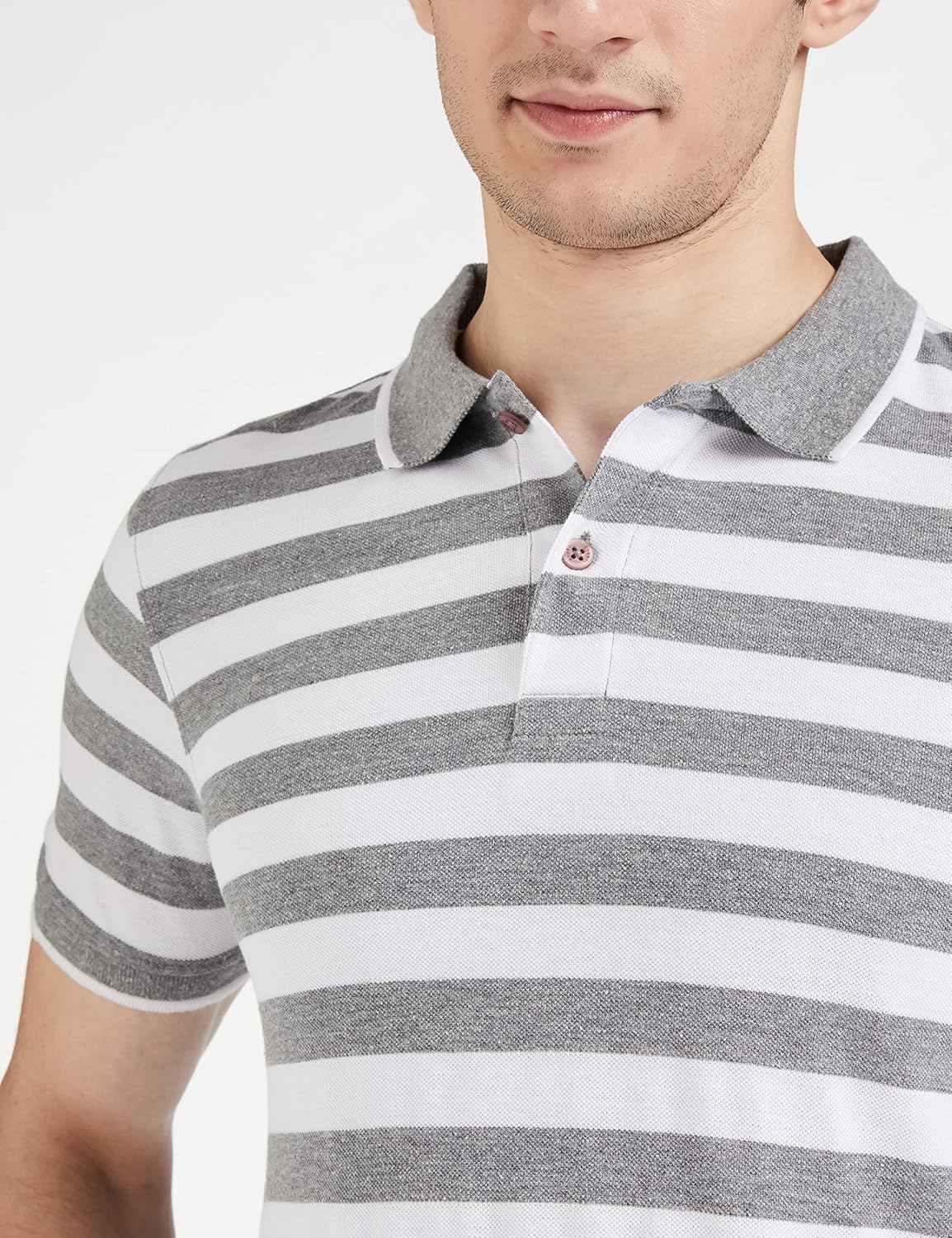 Amazon Brand – Symbol Men’s Cotton Rich Striped Polo T Shirt | Collar Tshirts | Half Sleeves-Regular Fit