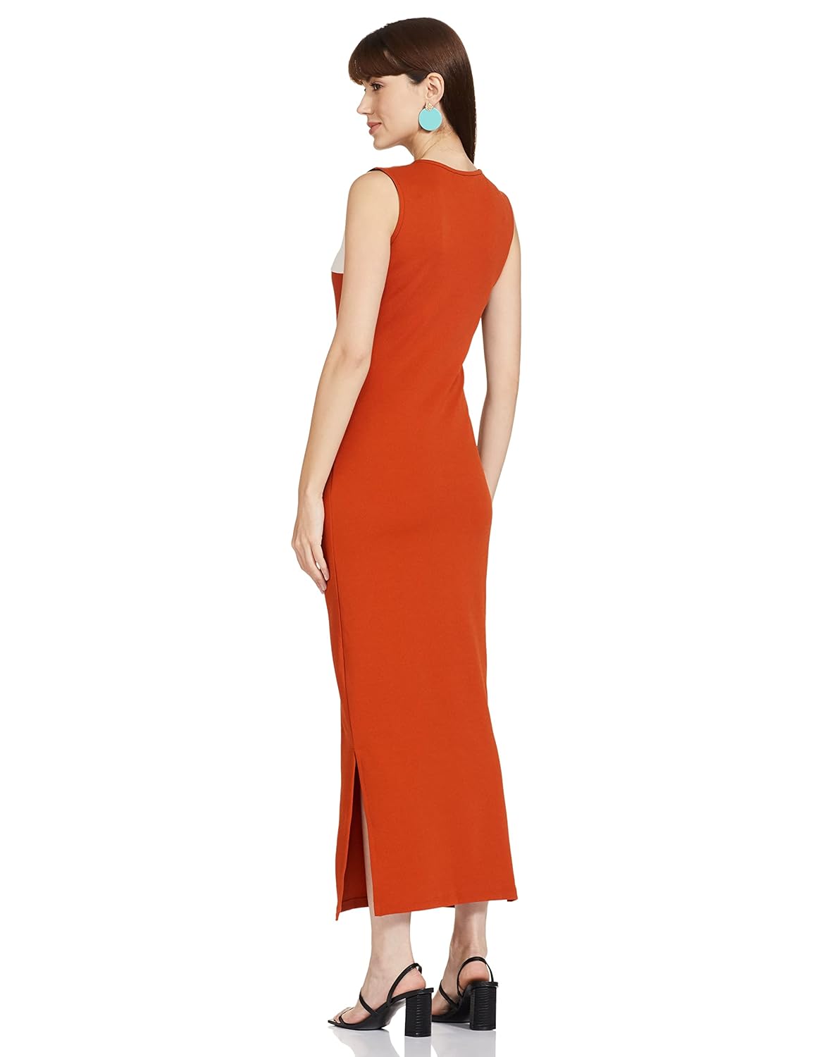 Amazon Brand – Symbol Women’s Crepe Bodycon One Piece Maxi Length Dress (with Color Block)
