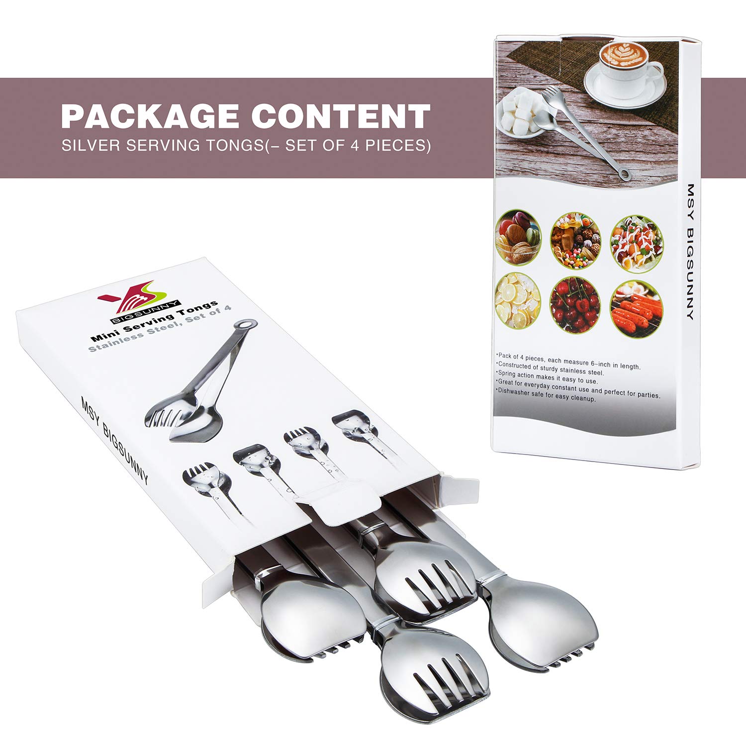 This MSY BIGSUNNY Set of 4 Mini Tongs are built to last and perfect for serving meat, steak, bread, salad, cookies, fried, hot dog, spaghetti, buffet, bbq, baking and so on. You will be amazed how nice these tongs are. Now order yours today!