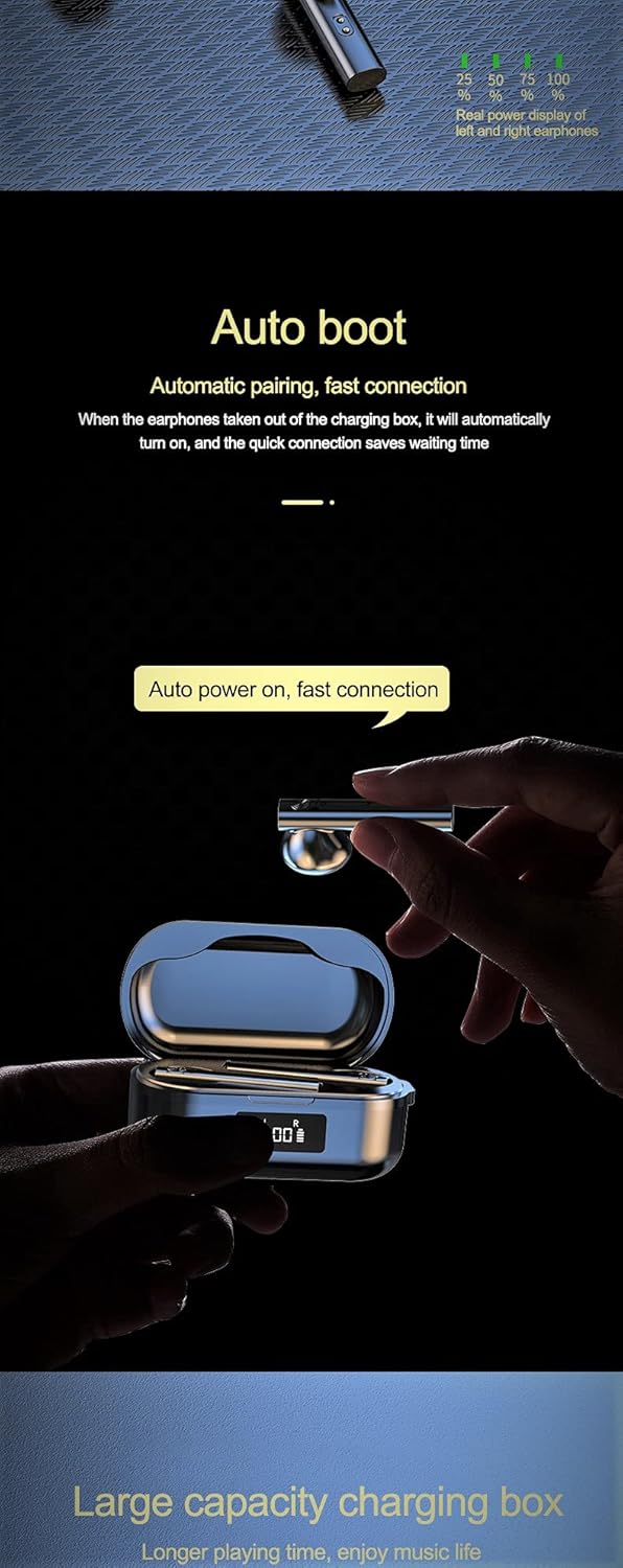 [One-step pairing] Pick up 2 earphones from the charging box, they will automatically connect to each other, and then you can easily enter the Bluetooth settings of your phone in one step to pair earbuds. [Digital screen and 24 hours playing time] The wireless earbuds can play music for 4 hours after a full charge.