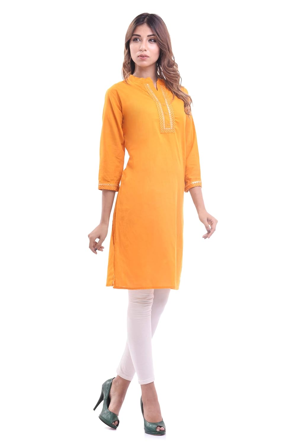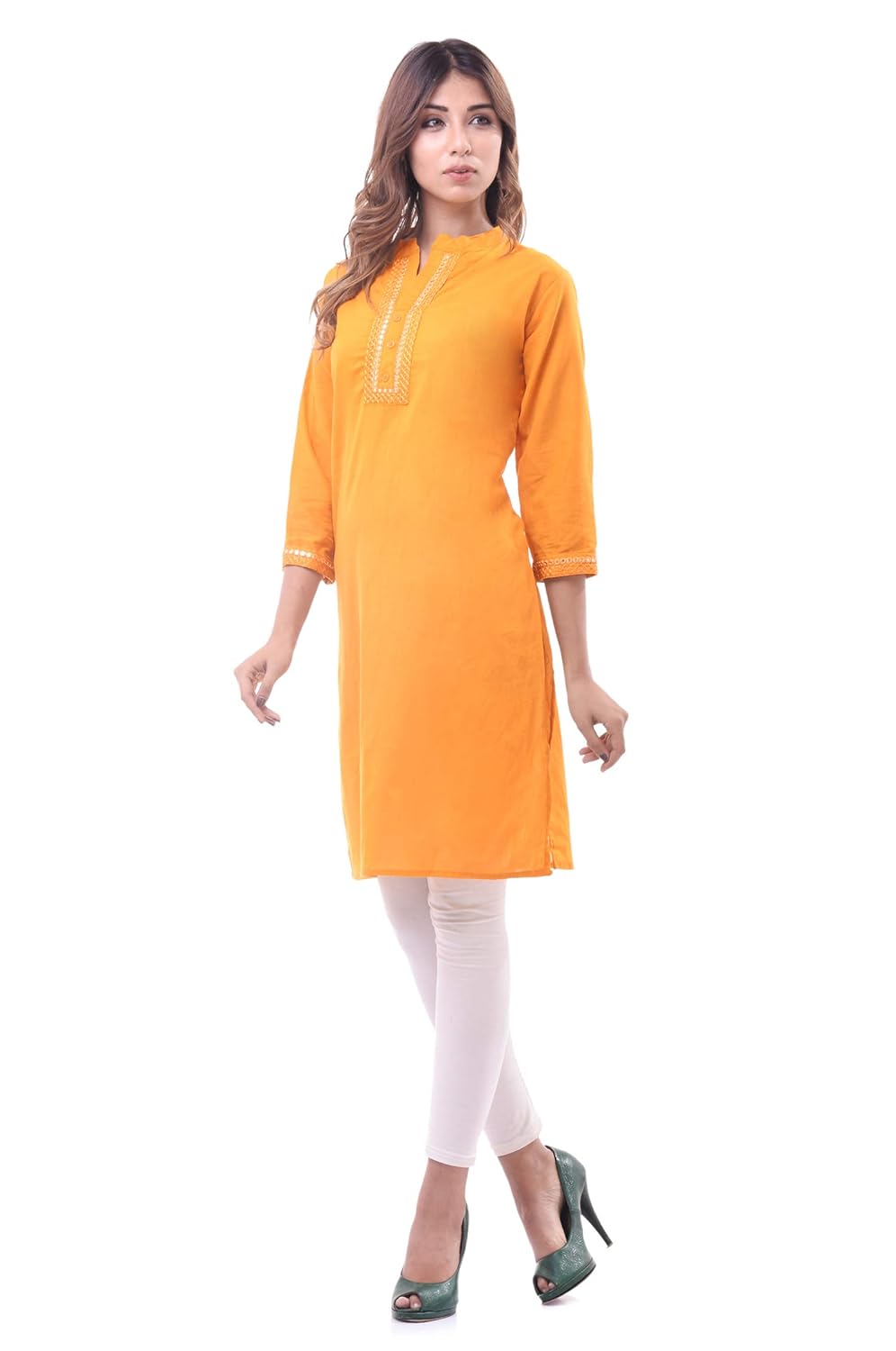 Flaunt sartorial elegance wearing colored kurta by Chichi. Look classy and stylish in this piece and revel in the comfort of the soft fabric. Team it with a salwar or churidar in lighter or brighter hues to create a contrasting effect. Women’s designer Indian tunic top (also called Kurti) are suitable primarily for the party wear and can be worn with the jeans or matching legging.Indian kurtis are perfect for the summer as casual and formal attire. PLEASE CHECK THE SIZE CHART BEFORE YOU ORDER. Bust size is displayed based on body measurement NOT actual apparel measurement. Kurti shirt’s actual bust measurement (stich to stich, 1 inch below the arm hole) is 4 inches more than the displayed bust measurement. e.g. if tunic top’s actual bust measurement is 44 inches, we display it as 40 inches.