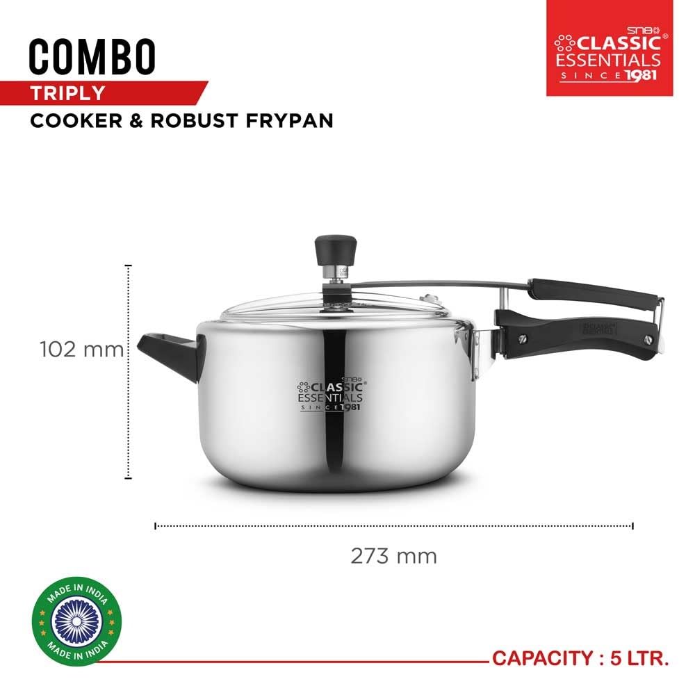 Combo Pack Inclusion: The combo pack consists of two essential pieces: a Triply 24 cm Frypan and a Triply Inner Lid 5 L Pressure Cooker.