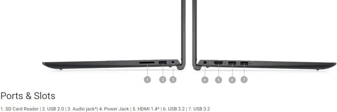 Ports: 1 x SD Card Reader, 1 x USB 2.0, 2 x USB 3.2, 1 x HDMI 1.4, 1 x Headphone & Microphone Audio Jack