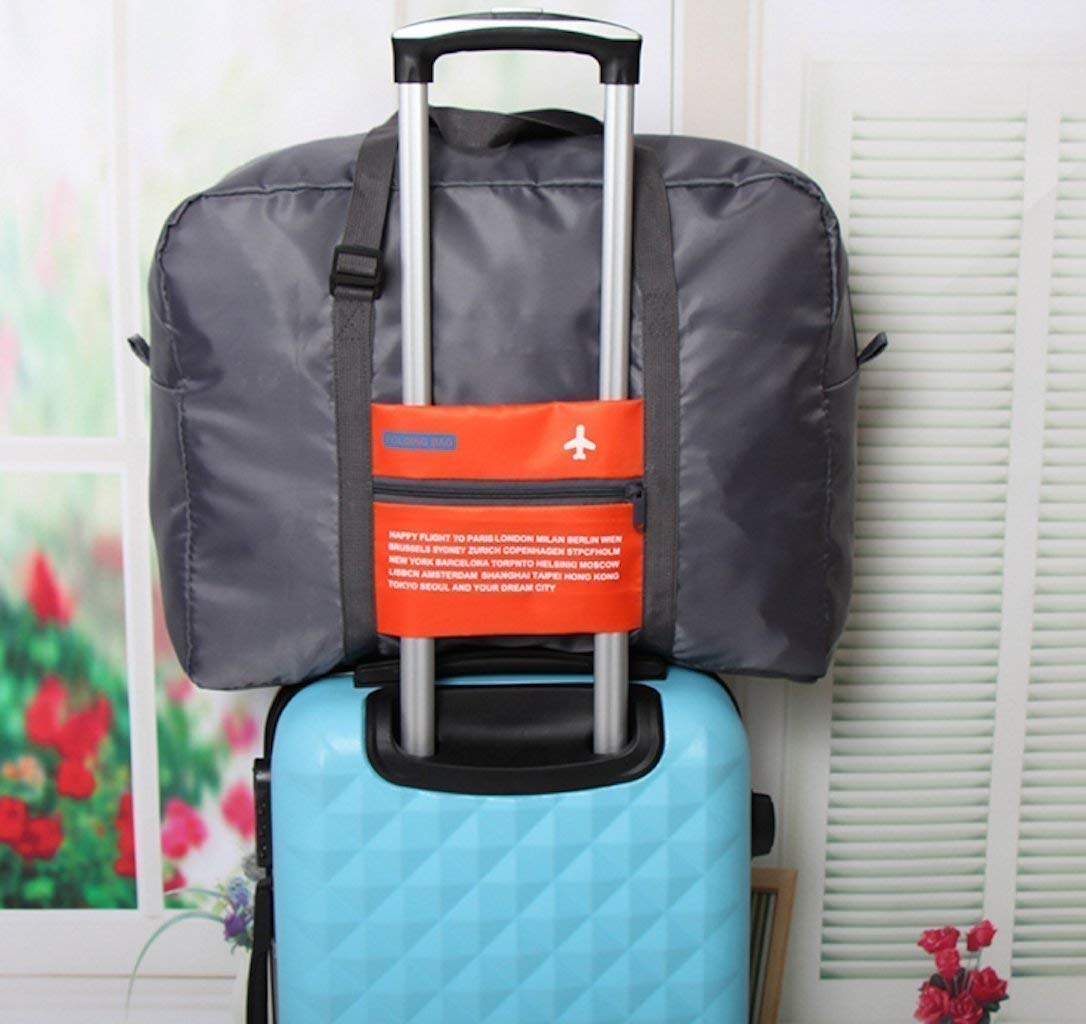 - Folding Bag rides comfortably on your shoulder or can hang on the pull handle of your luggage.
