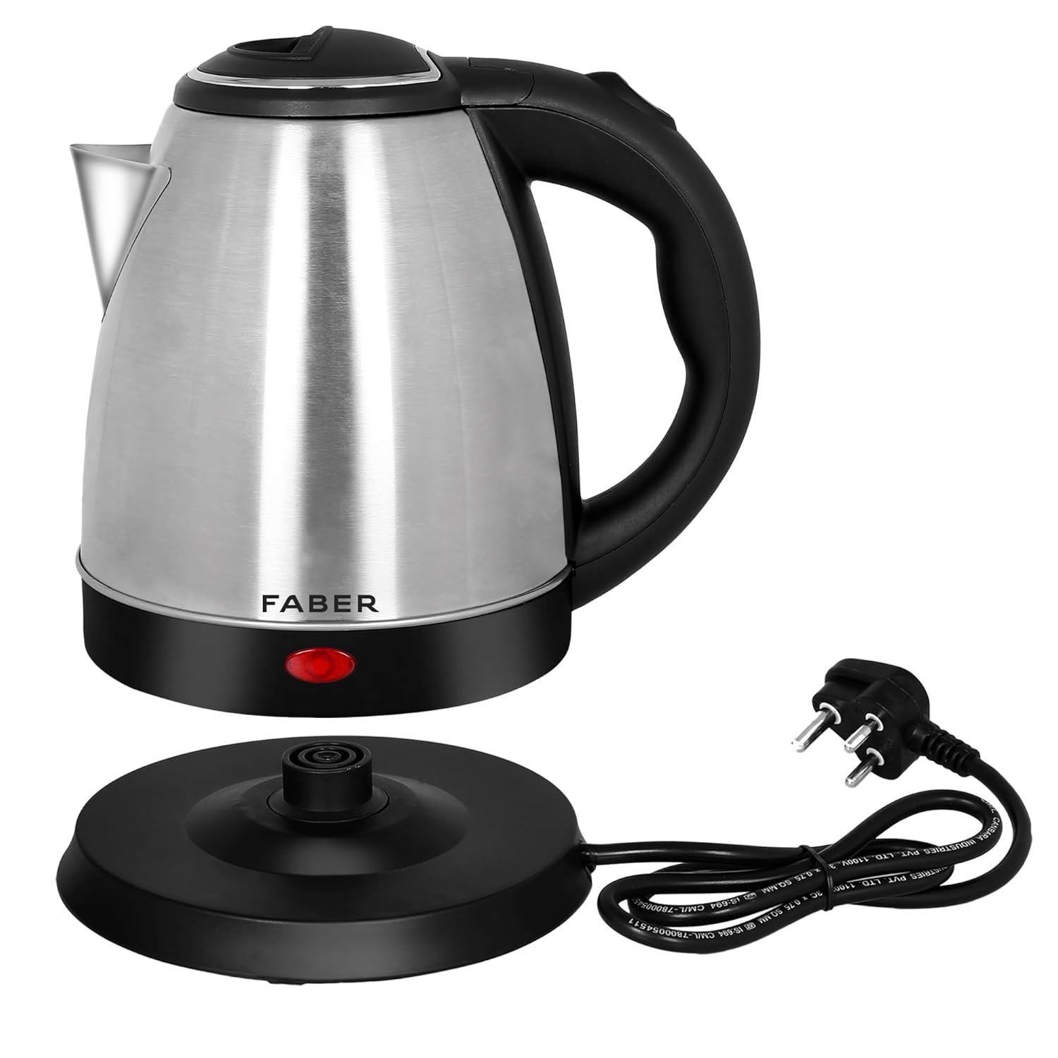 Wattage: 2200W, This 2200 W electric kettle has concealed heating elements and can boil up to 1.5 litres of water in 5 to 7 minutes, quicker and safer.