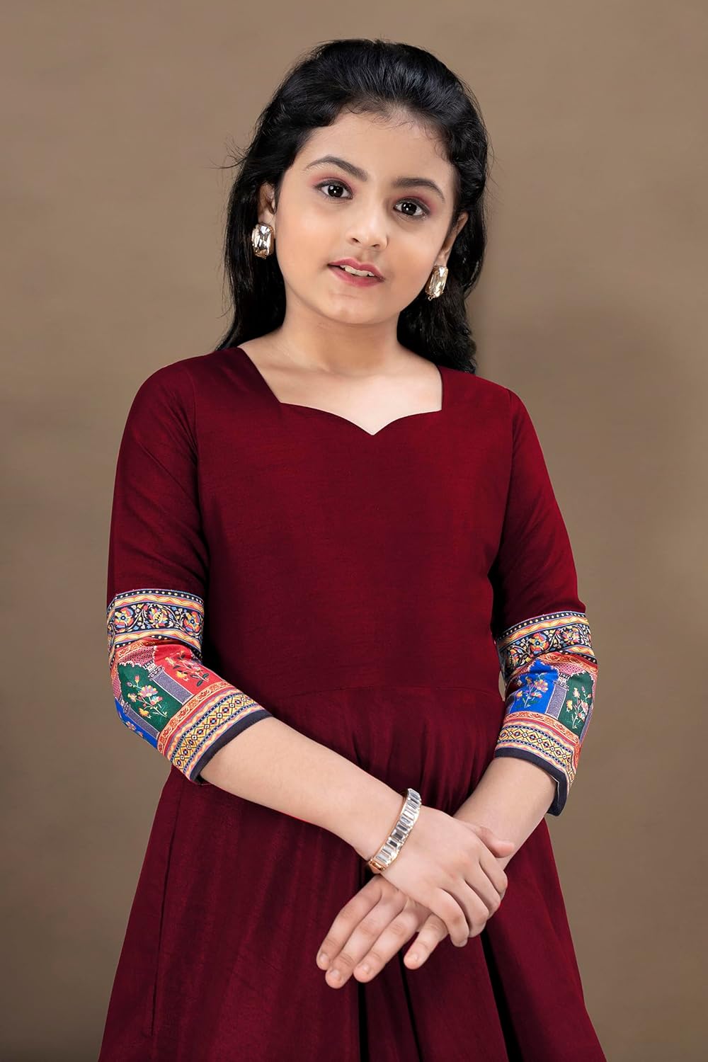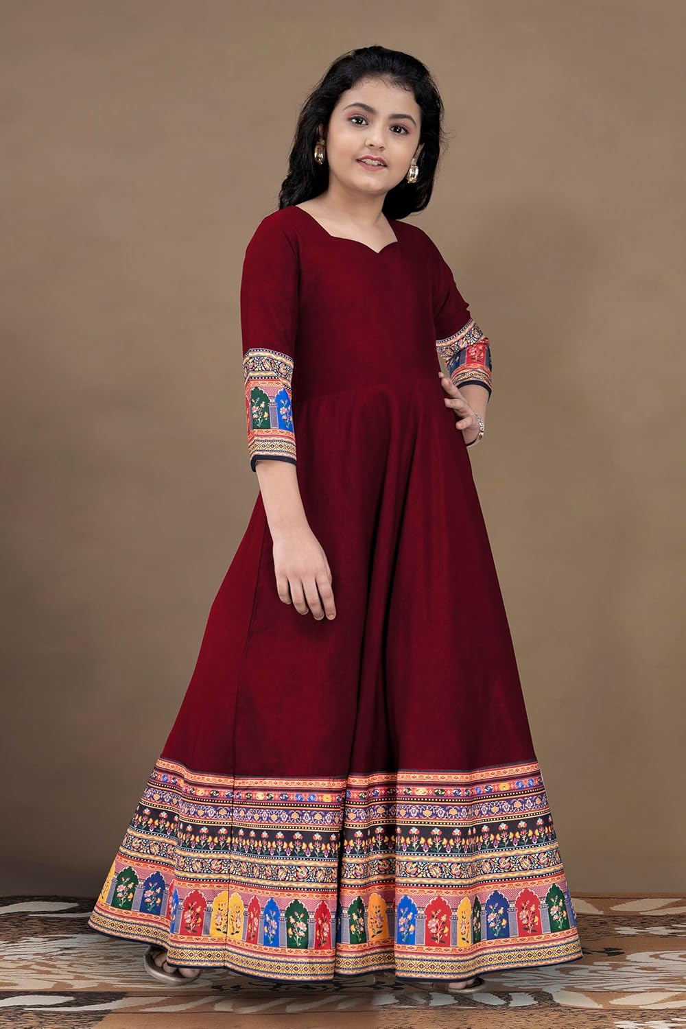 Spruce up your girls wardrobe with this maxi dress from Fashion Dream on Amazon. This ruffled dress is perfect for a party, day out with friends or night of get-togethers. Presenting a light blue digital floral printed tabby silk gown, featured v neckline with ruffle detailing yoke till natural waist-length followed by medium flare to floor-length, comes with self-fabric belt on back. This maxi dress has cancan attached with lining material that give volumetric flare to this dress. This beautiful designer girl’s maxi dress is a perfect fit for all parties & occasion where you want to show your special appearance. Pair it with well-defined eyes and minimal jewellery to bring out the best in you!