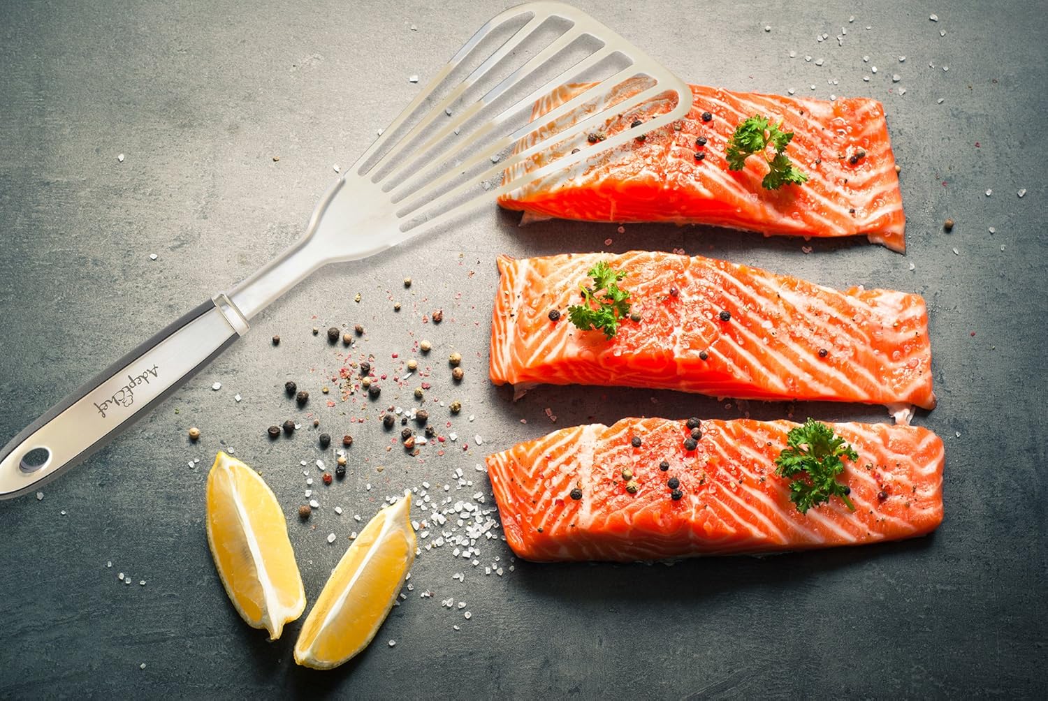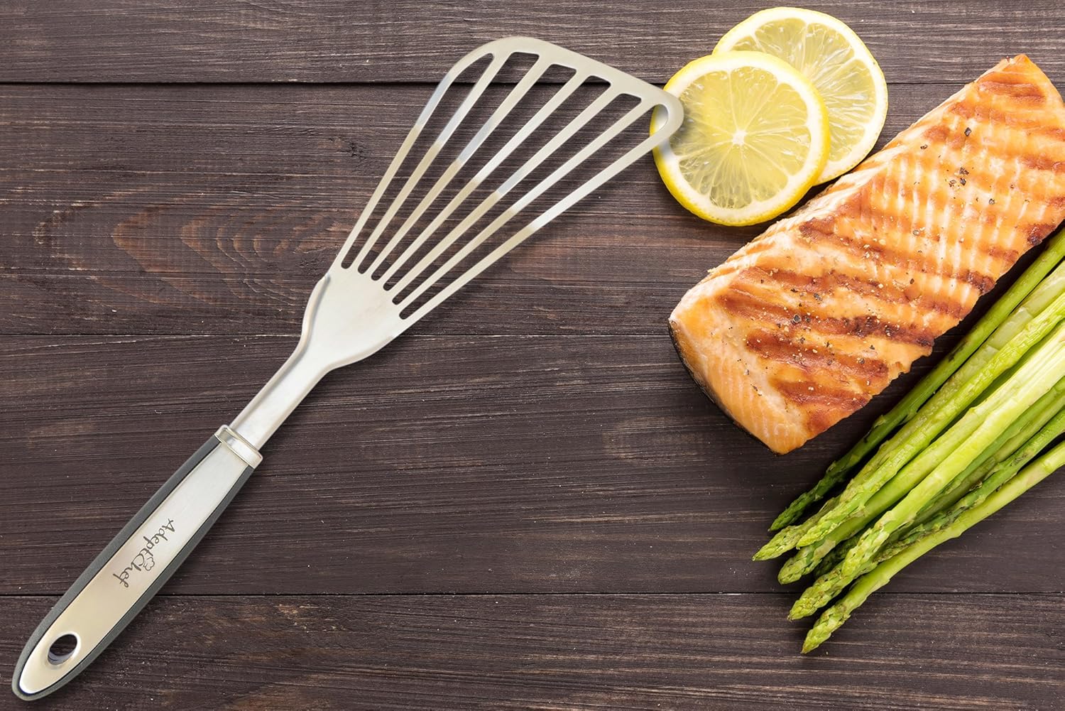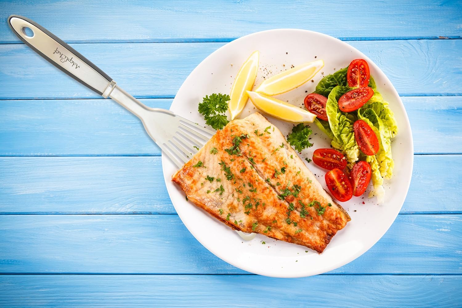 Fish Spatula – AdeptChef Stainless Steel, Slotted Turner – Thin-Edged Design Ideal for Turning & Flipping to Enhance Frying & Grilling – Sturdy Handle, Multi-Purpose – Buy Yours Today!