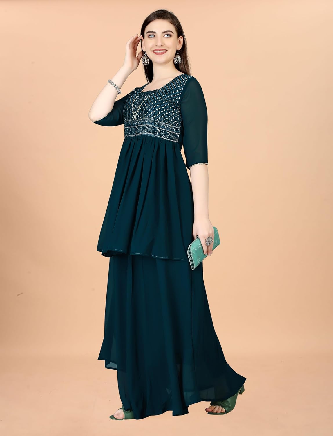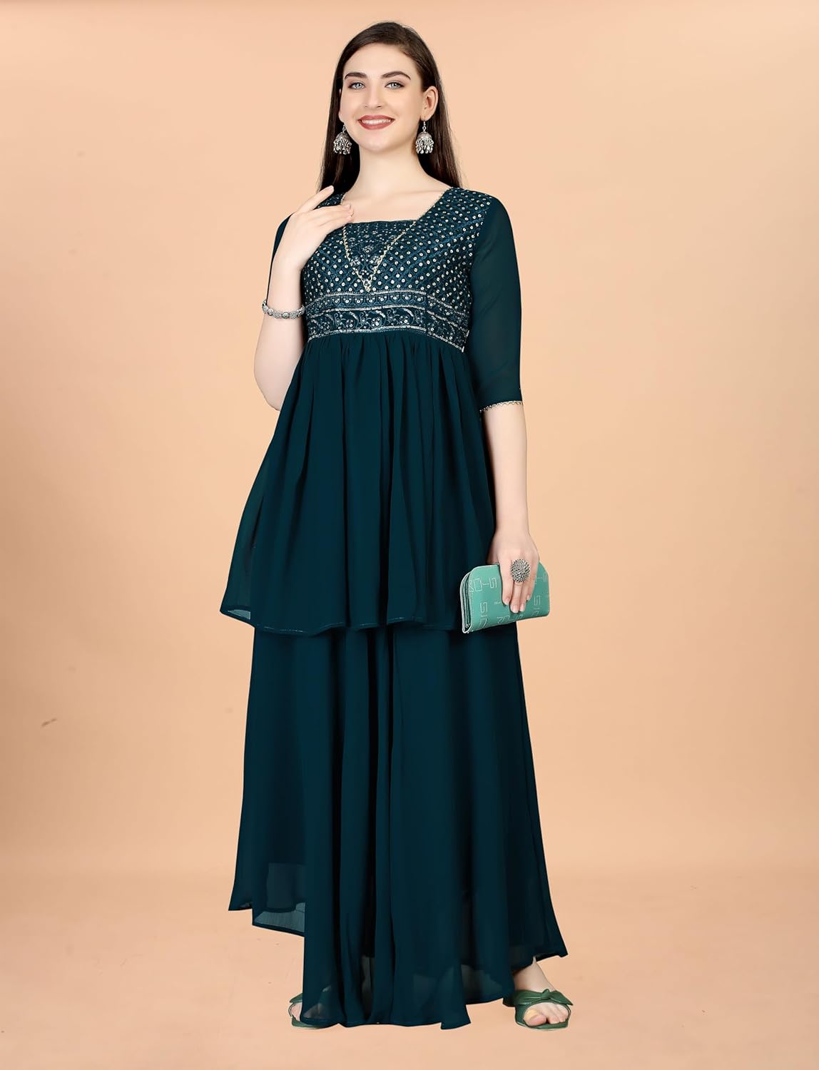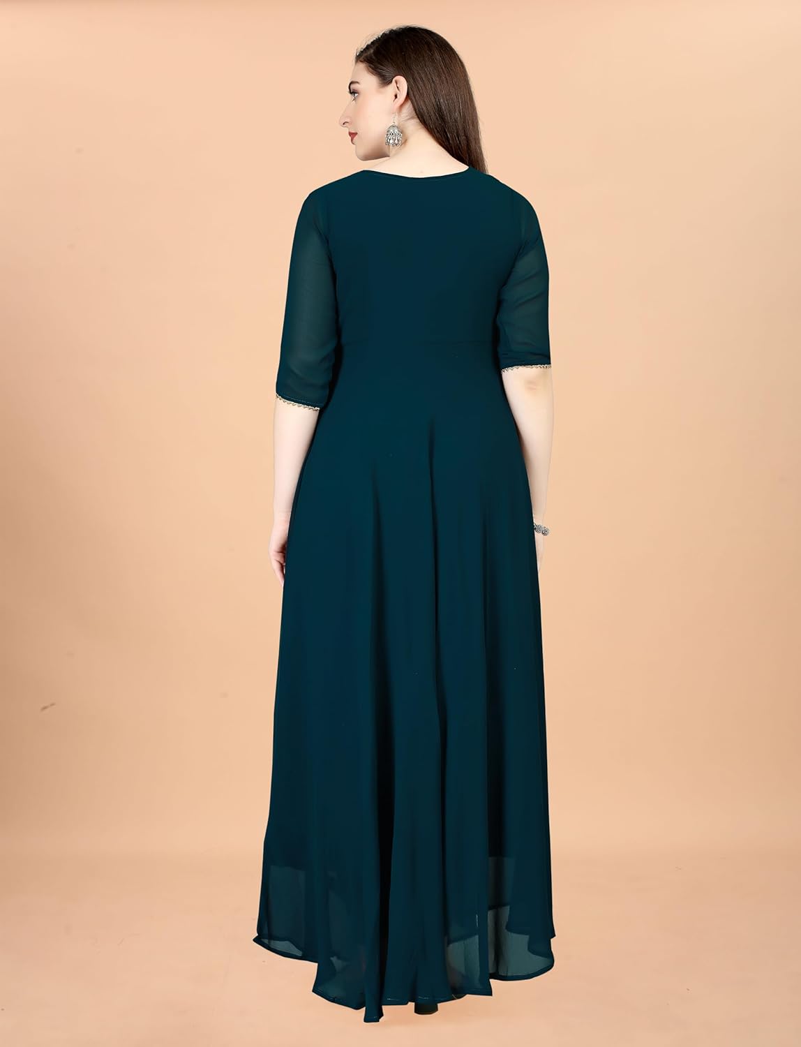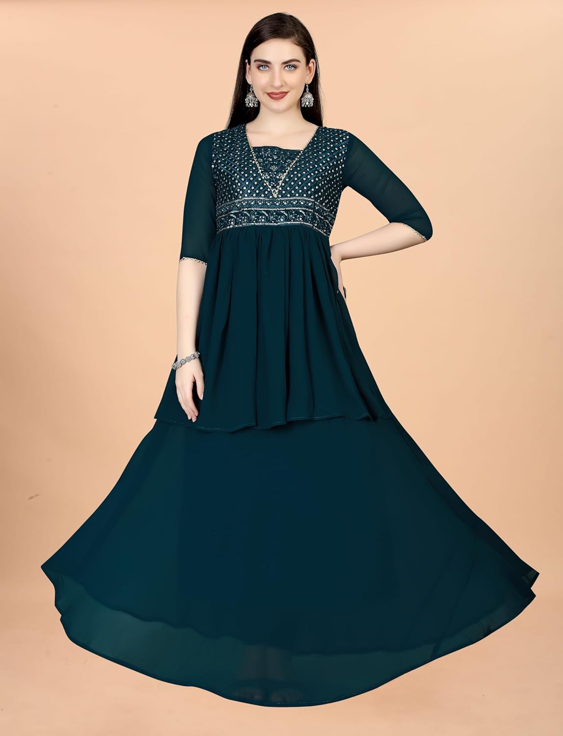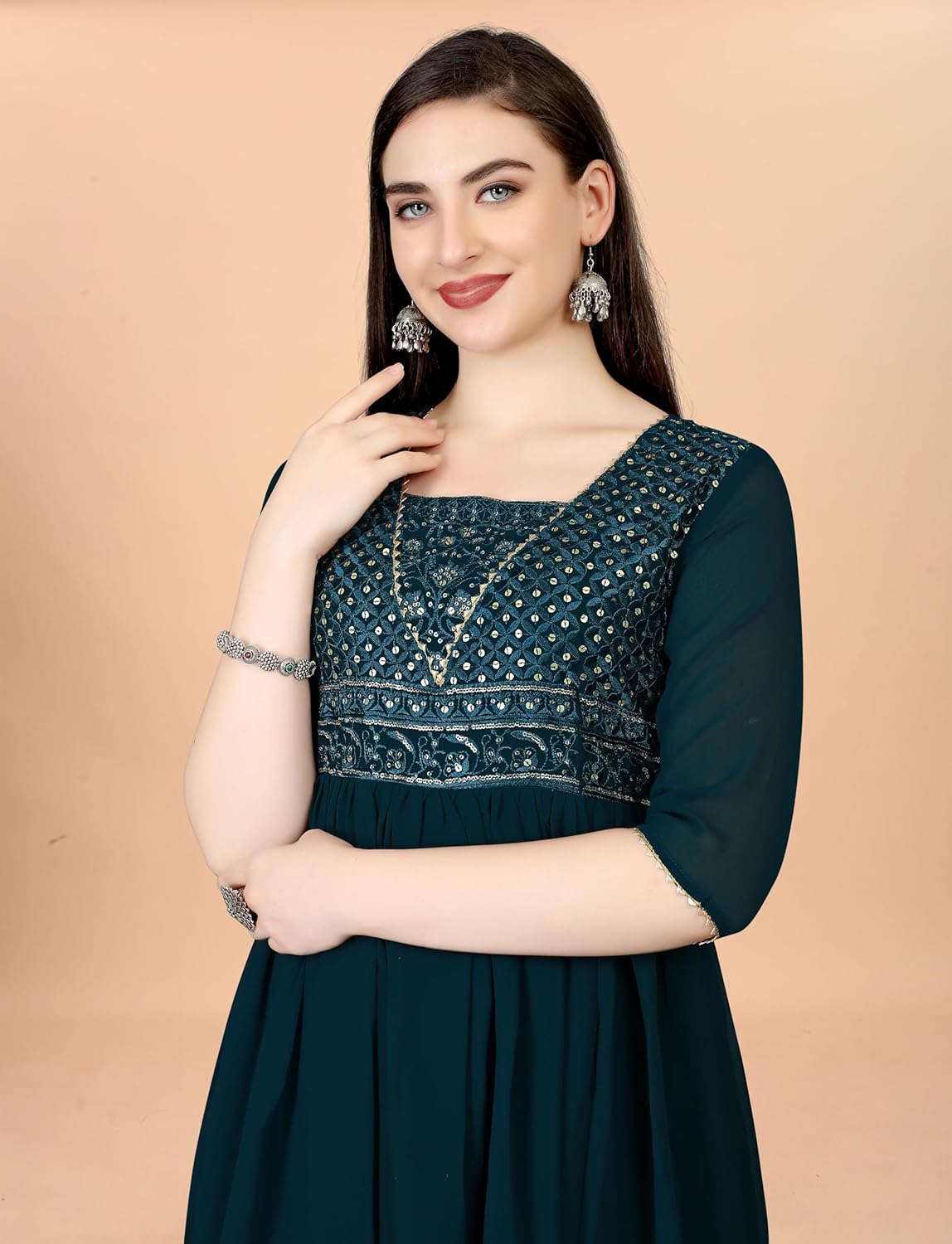 Embrace the beauty of tradition with a touch of contemporary flair in the Florely Traditional Ethnic Sequence Embroidered Flare Gown -an epitome of grace, style and cultural heritage.
