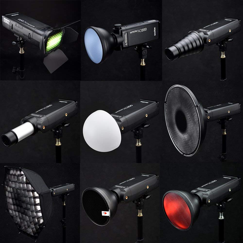 battery pack and two different flash head offer diverse light effects. Builtin Godox 2.46 wireless X system and fully support of TTL