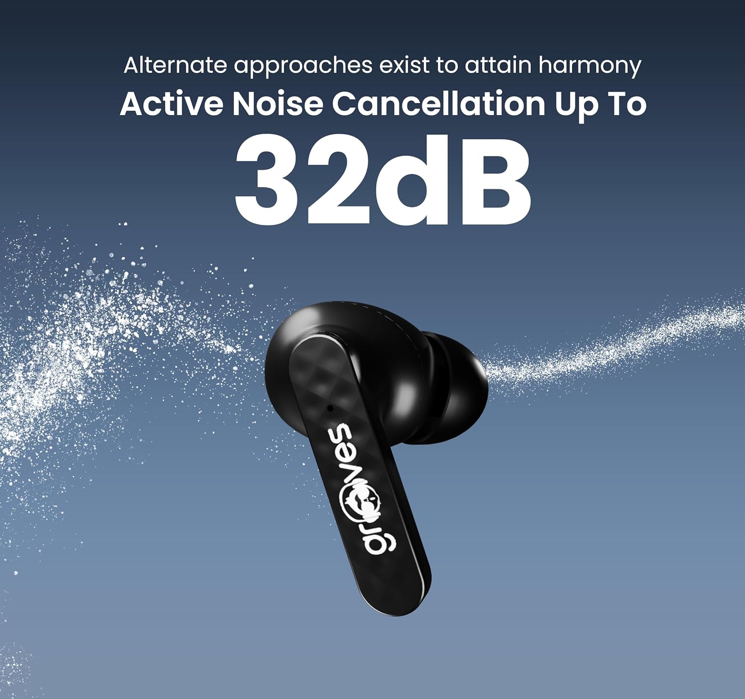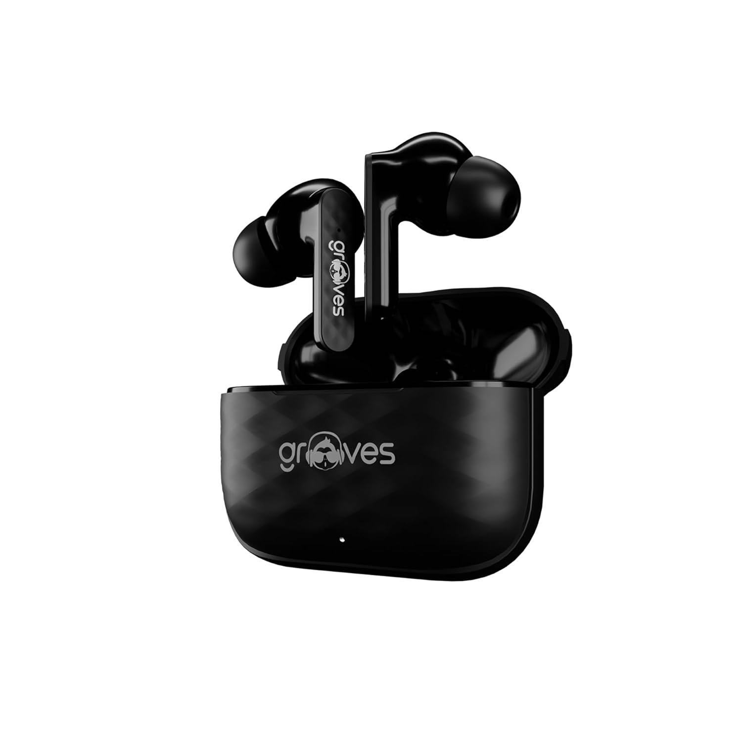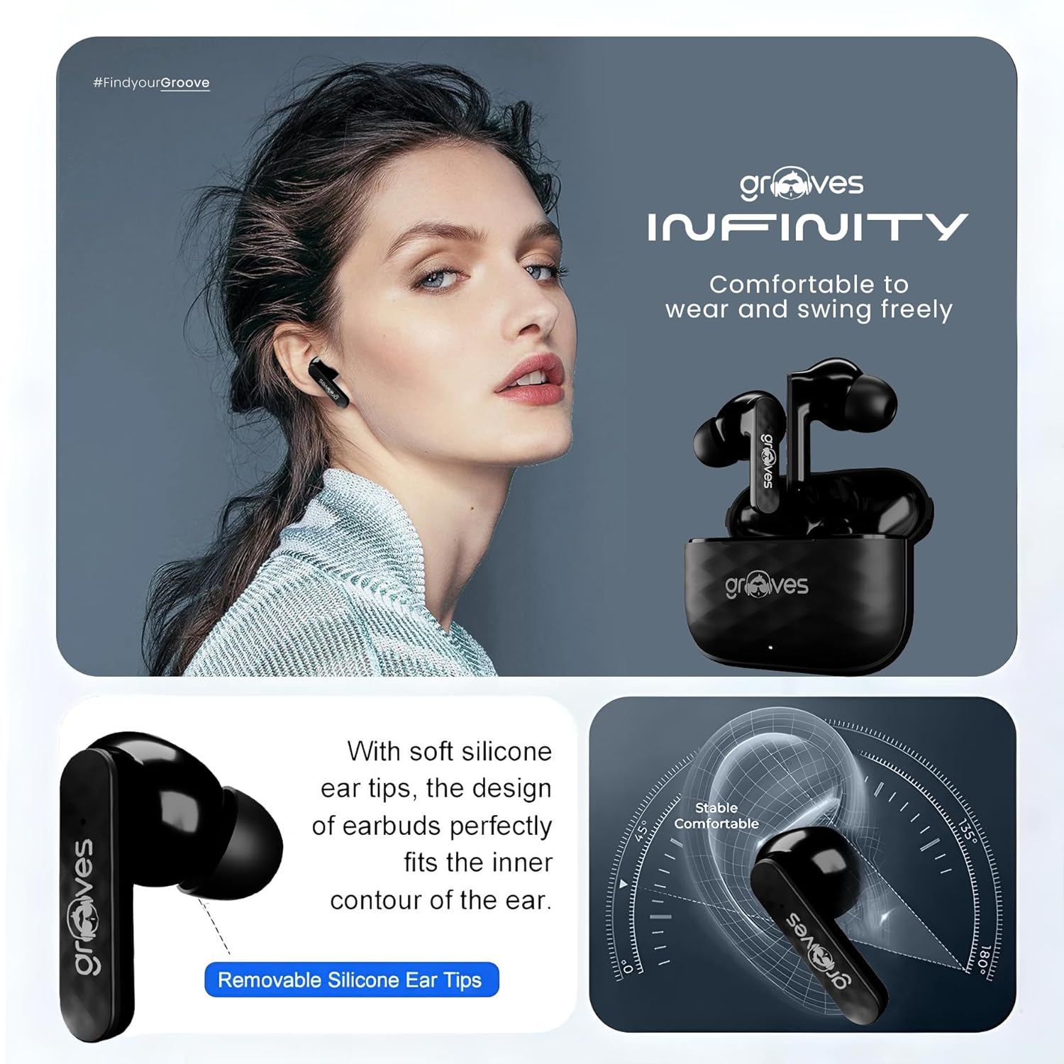 GROOVES Infinity Ultra Luxury Diamond Finish, 120 Hrs Standby, Super Bass and Adaptive 4 Mic ENC, Low Latency Calling with Voice Control, 5.3 Bluetooth Headset (Black, True Wireless)