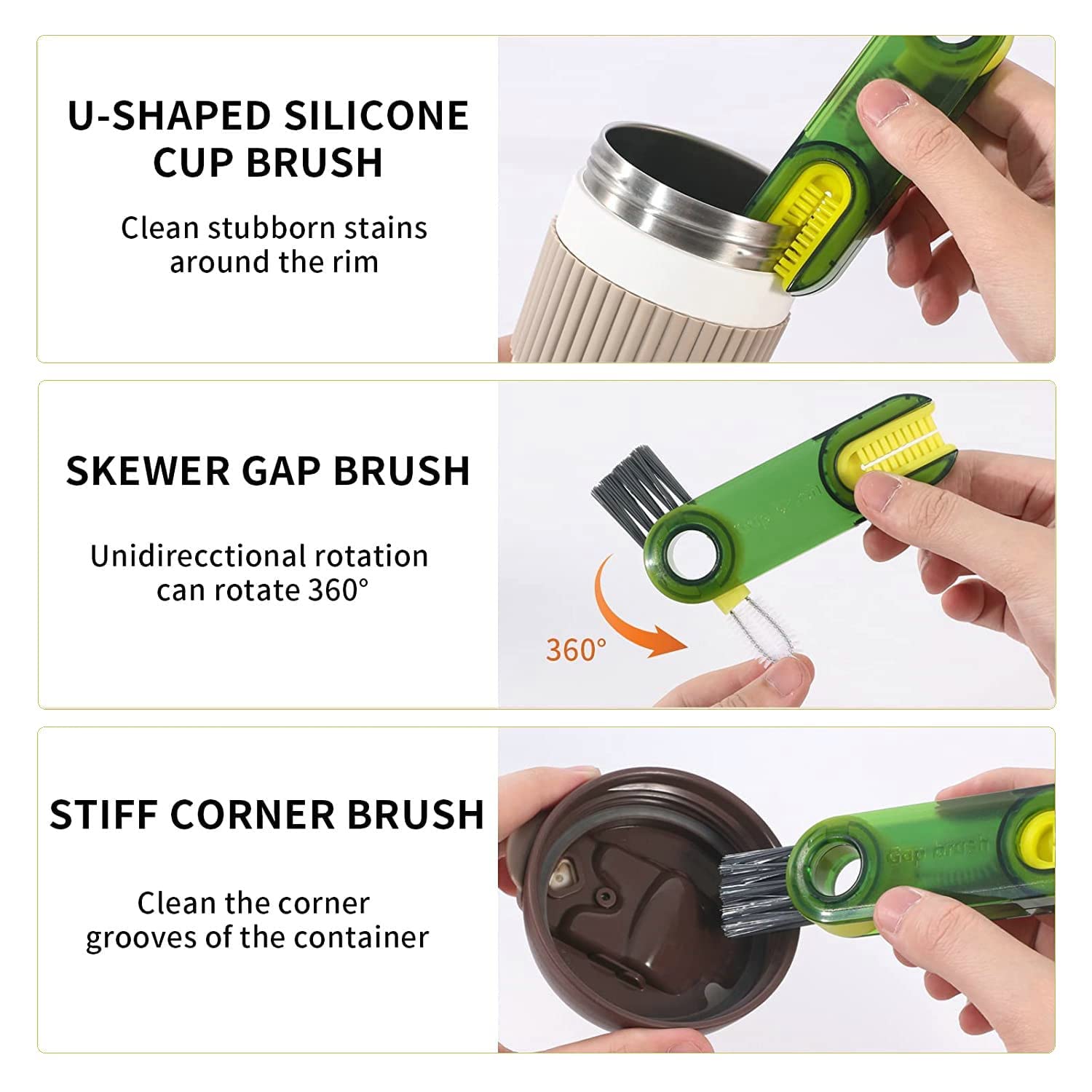 【3 in 1 MUILTIFUNCTIONAL CLEANING BRUSH】- The multifunctional tiny bottle cleaning brush is desgned into 3 prts: ①U-shaped brush which can match the cup lip to clean stubborn stains around the cup mouth. ②Tiny Gap Brush to clean the narrow grooves on the inner wall of the cup cover. ③Hard bristle corner brush to remove the dirt in the corner groove of the container. The 3 in 1 bottle cleaning brush is perfect for cleaning cup lid,tiny bottle, nursing bottle, cup cover,bottle cork dirt, etc.