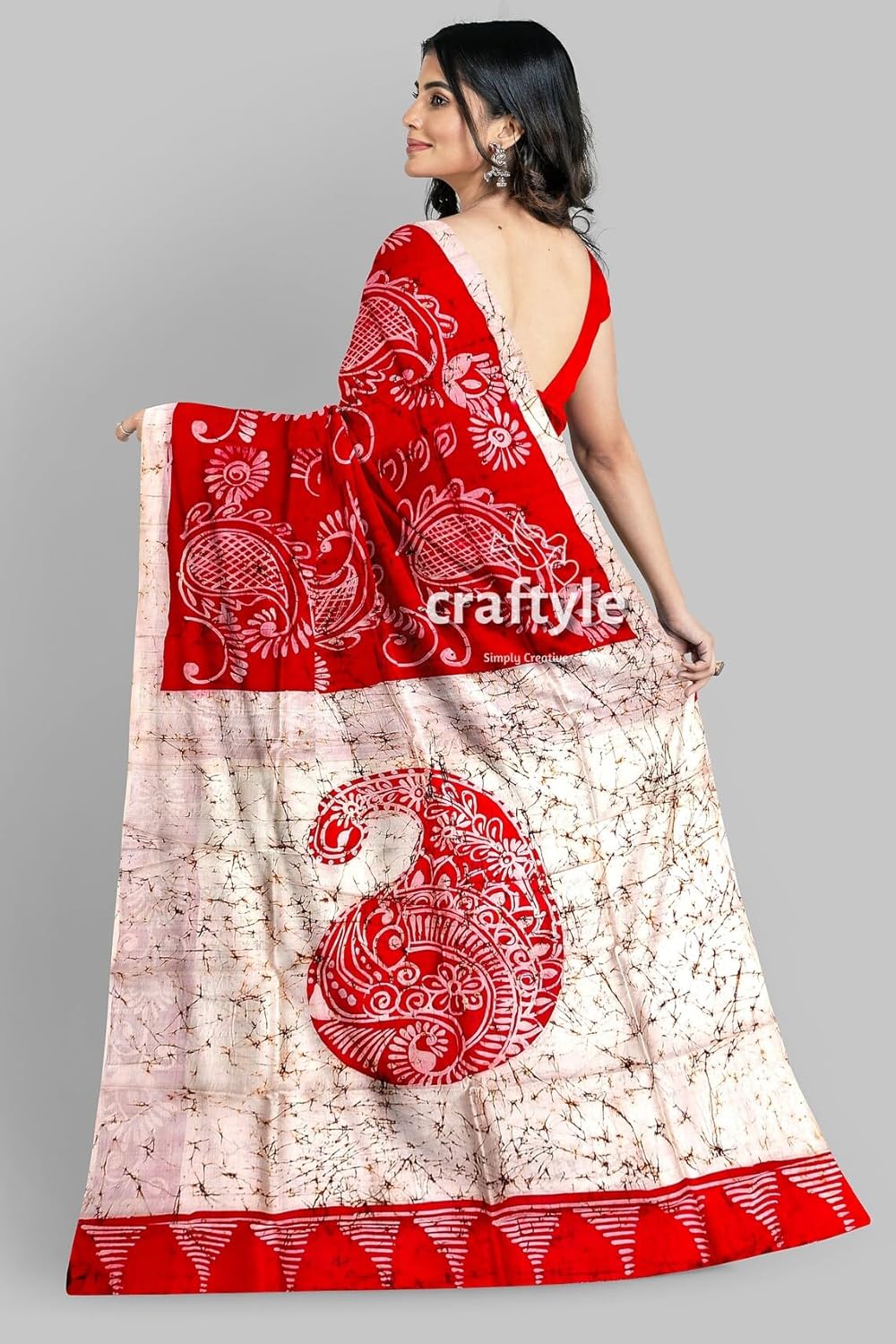 JANKI FABRIC Women’s Jaipuri Ikat Hand Block Print Mulmul Cotton Sarees for Women | Cotton Mulmul Sarees for Women Attach Blouse Piece