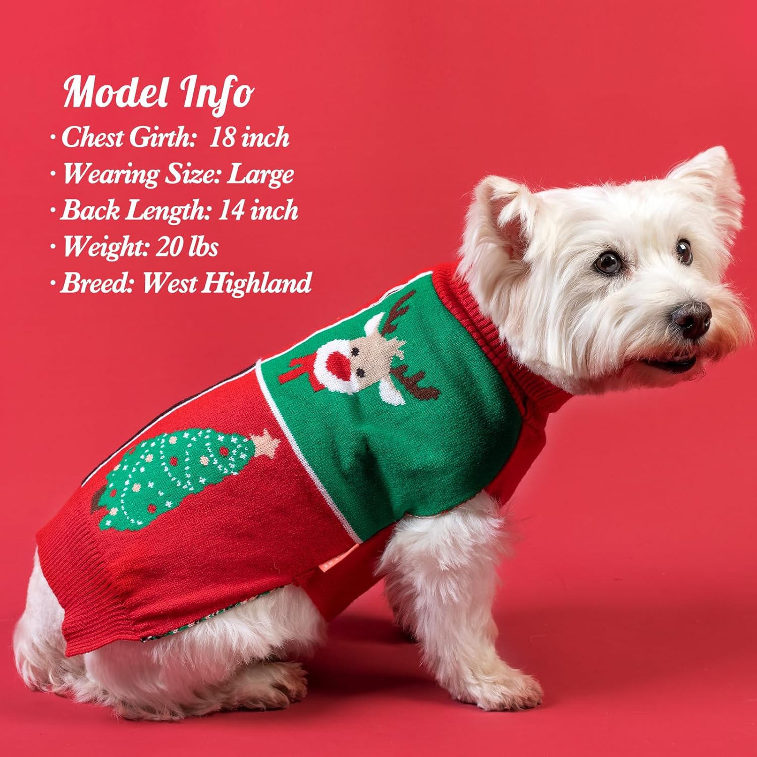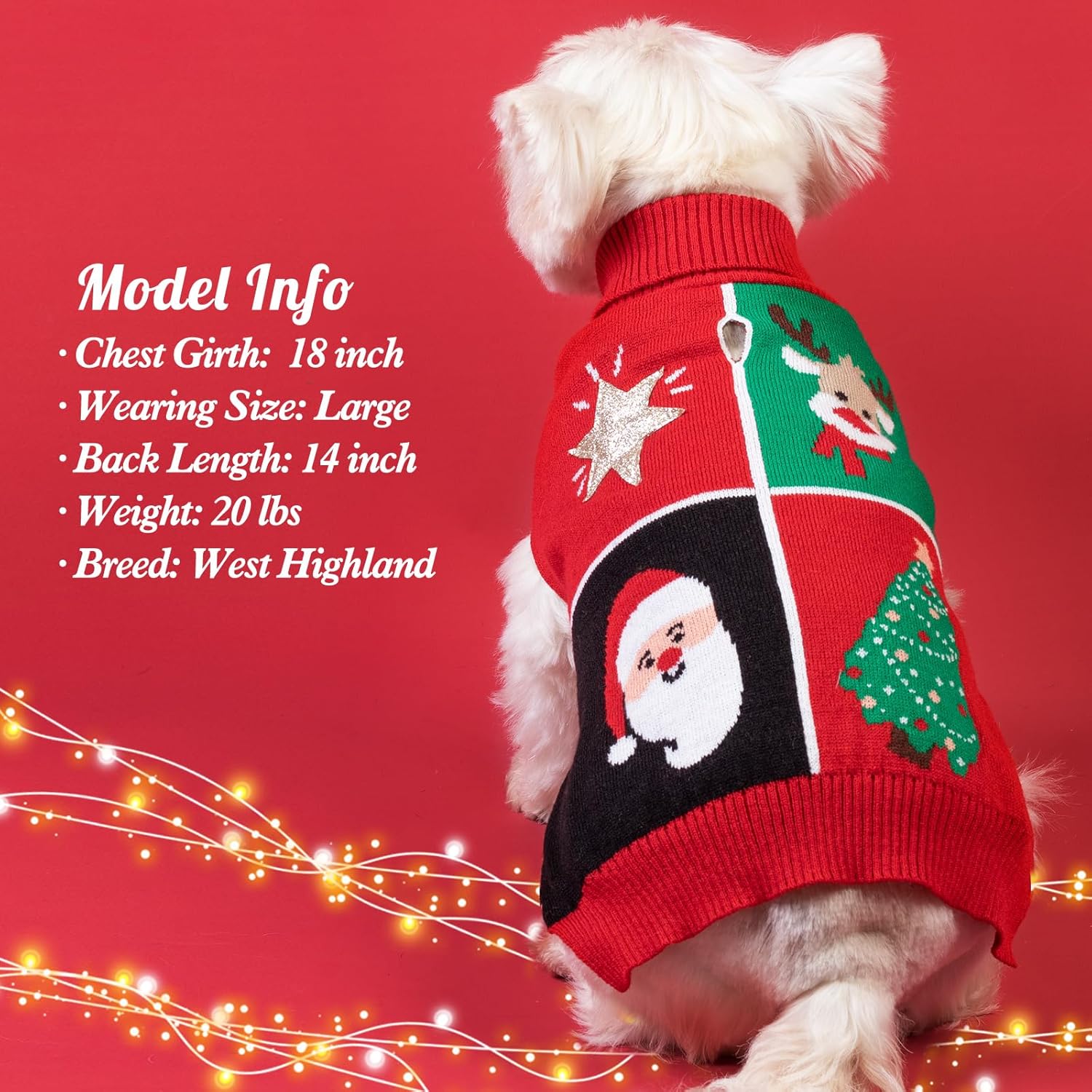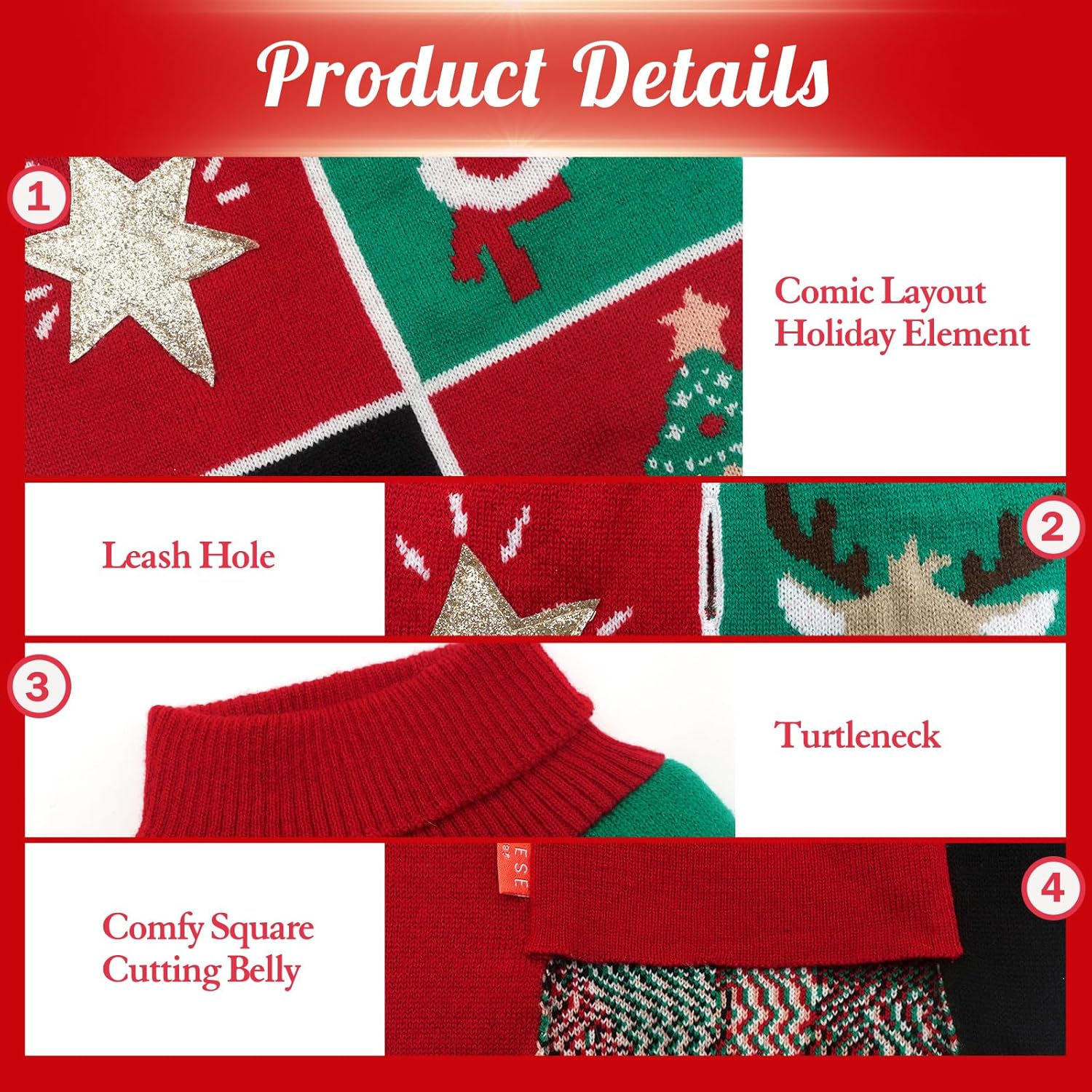 Xmas dog sweater in color block is exclusive designed by KYEESE, combines with Santa, reindeer and Christmas tree in one sweater, adds more color fun for holidays