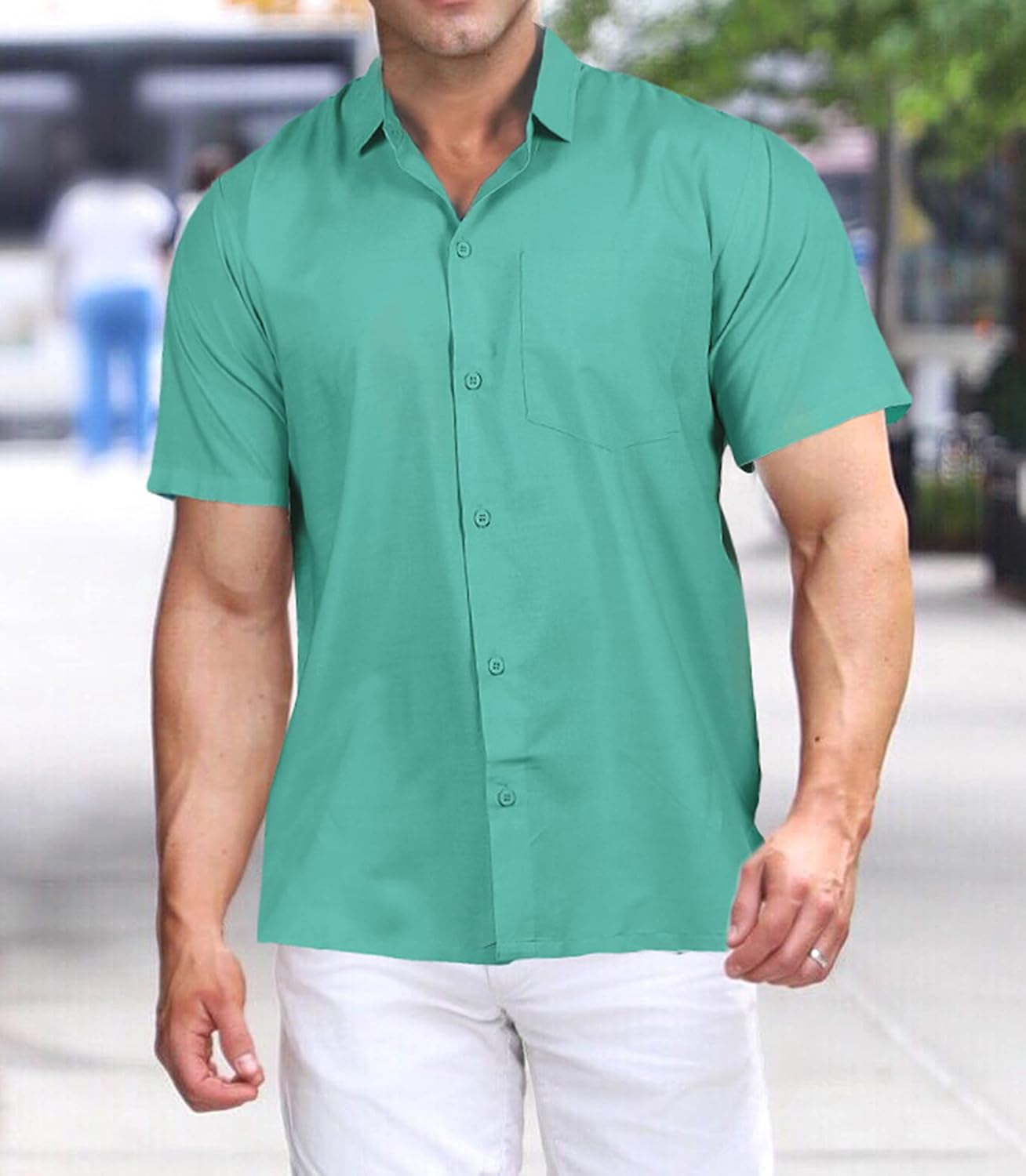 Our trendy printed holiday shirts finished to perfection with front buttons closure, flattering fit to die for, spread collared, comfy short sleeves, perfect neckline, a single chest pocket