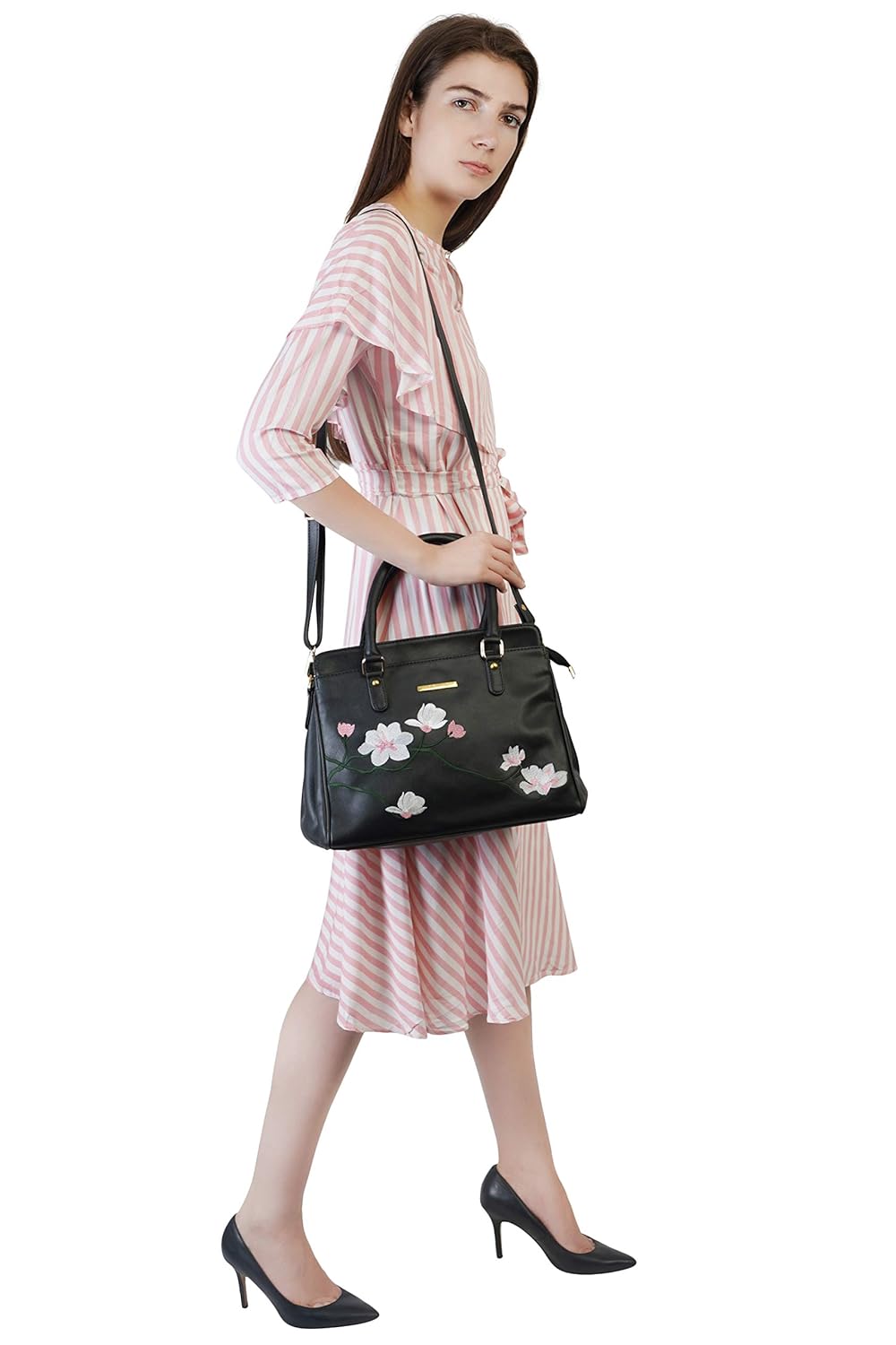 Customers appreciate the handbag’s quality, value, and size. They find it has multiple pockets of different sizes and is a good office or mom bag. The leather quality is also appreciated. However, some customers dislike the weight and have mixed opinions on the material quality.