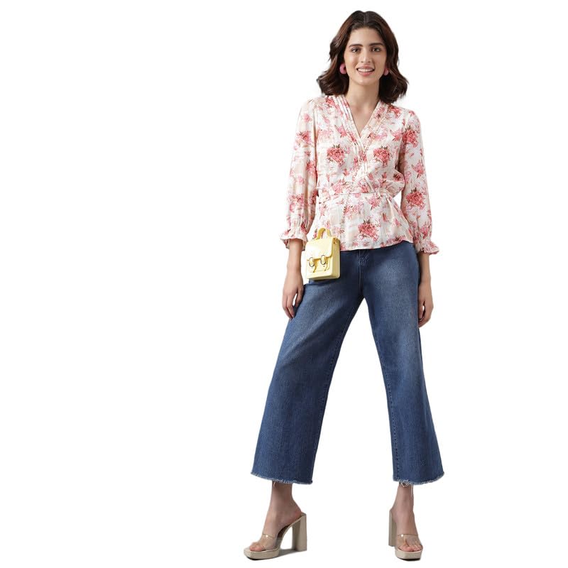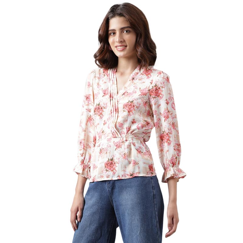 Latin Quarters Women’s Floral Printed Regular fit Peach Top