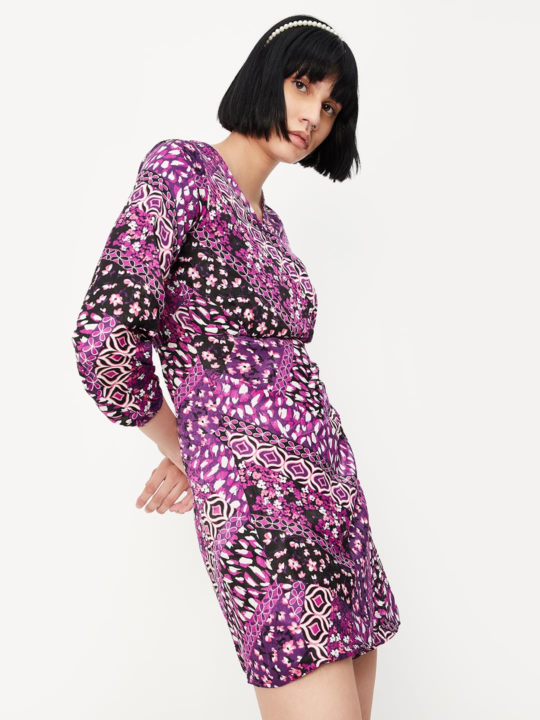 Women Floral Printed Puffed Sleeve Dress