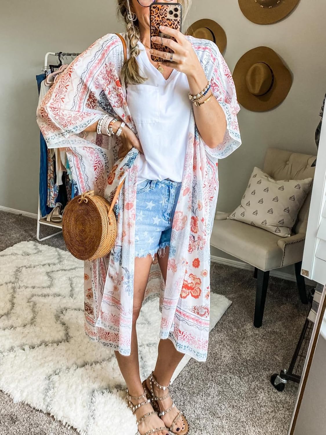 If yes, choose 5-minute outfit! Simply pair this long kimono cover up with your T-shirt and shorts, blouse and jeans, all different dresses or whatever you like.