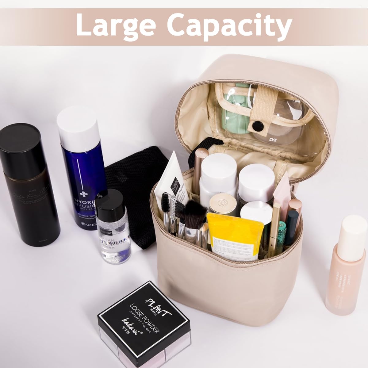 DURABLE NYLON MATERIAL: Crafted from high-quality nylon, this pouch offers exceptional durability. Its dustproof and waterproof properties ensure that your makeup and accessories are protected whether at home or on the trip, making it an ideal portable makeup storage bag from bathroom to dressing table .