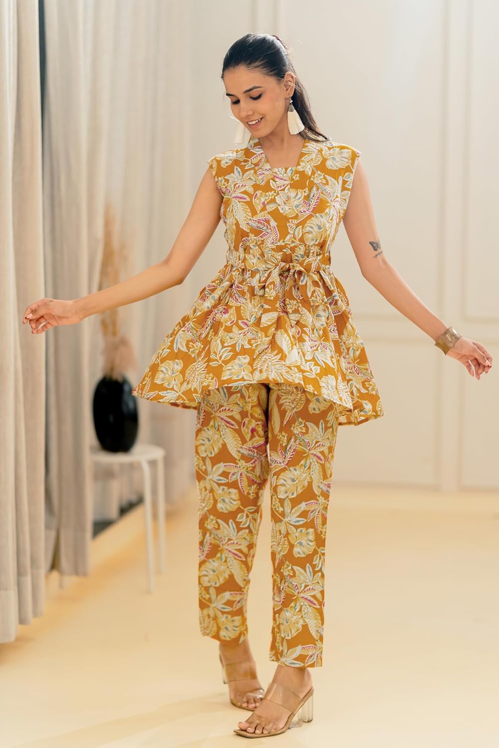 Get a charming western look with this beautiful ethnic 2 Piece Kurta Co-Ord Set with Trouser made of high-quality fabric Cotton. This Flared top promises it fits good on your body shape, also offering extra 1 inch margin for customize need and leg movement for all day comfort.