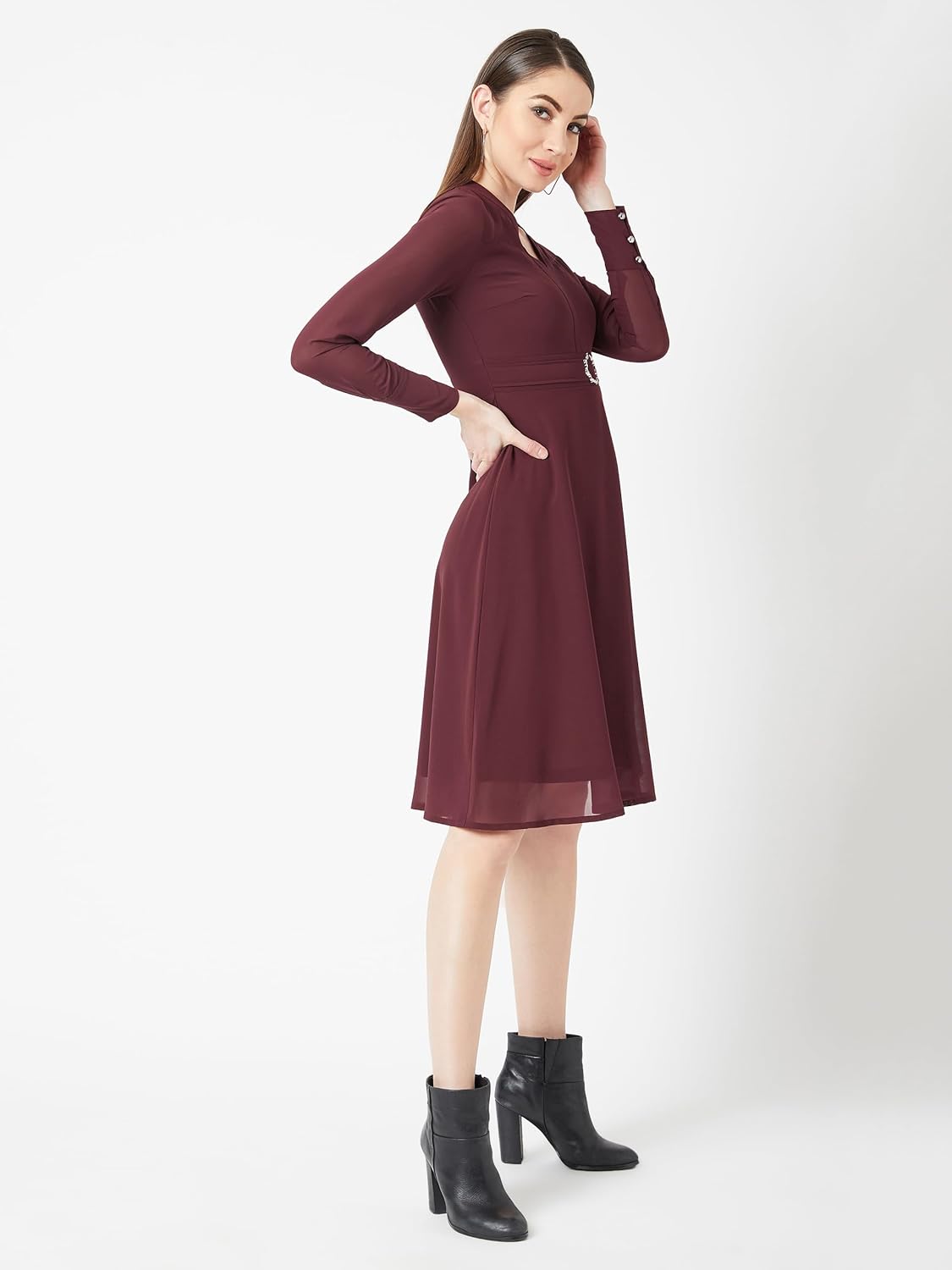Generic Name : Miss Chase Women’s Wine Red V-Neck Full Sleeve Solid Fit & Flare Midi Dress(MCSS20D14-39-184-05_Maroon_L)