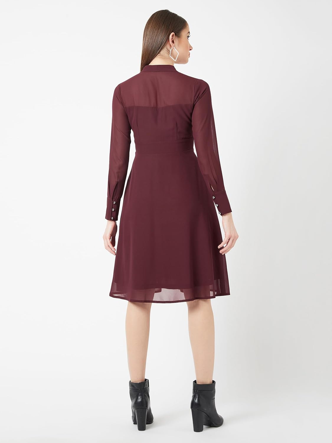 Generic Name : Miss Chase Women’s Wine Red V-Neck Full Sleeve Solid Fit & Flare Midi Dress(MCSS20D14-39-184-05_Maroon_L)