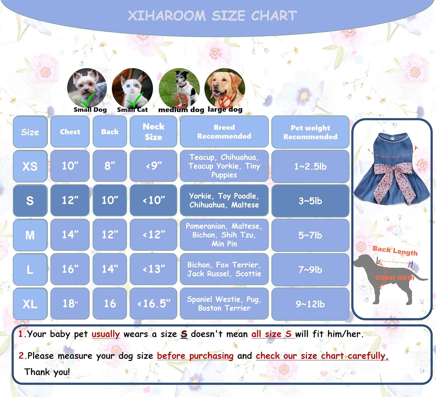 Uique Design :Blue washed denim with floral bows, elegant pastoral style,make your little furry princess looks adorable and charming