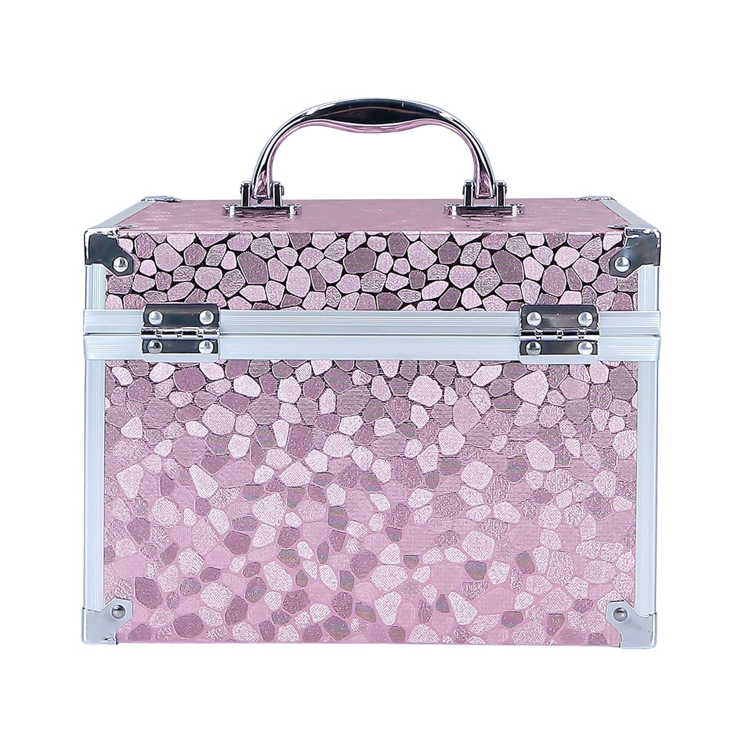 Material : Aluminium Cardboard Plastic- Lightweight, waterproof, durable, easy to clean makeup case, Extra-large cosmetic bag, elegant and stylish; Double-layer design, lock closure. A sturdy carry handle add convenience to the cosmetic organizer.
