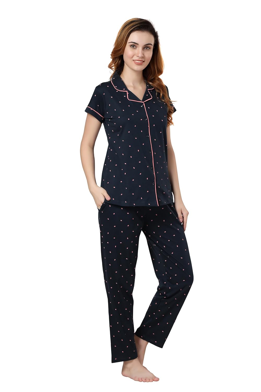 NIGHTVIEW NIGHTUIT 100% Hoisery Cotton Night Suit for Women/Girls in Half Sleeve with Pajama for Comfortable Sleep, Night Suit