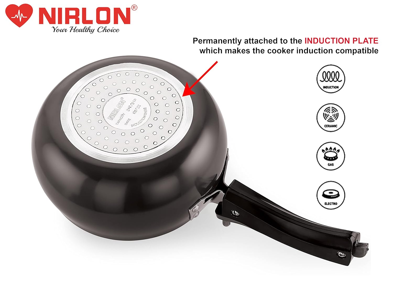 Gas & Induction Compatible: The gas and induction compatible bottom allows you to cook on either surface with utmost safety. Comes with weight valve which is the first level of safety feature to release pressure which makes the cooking safe and time saving