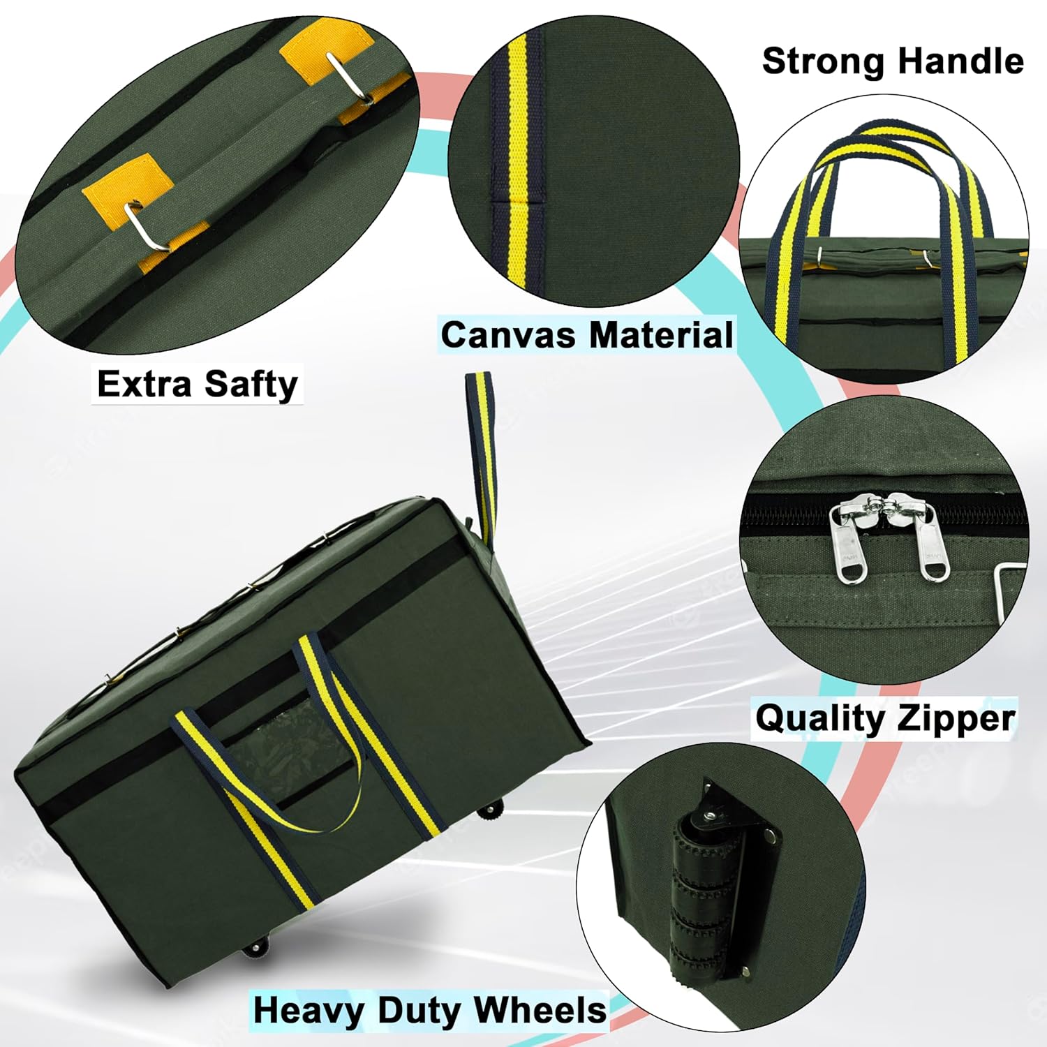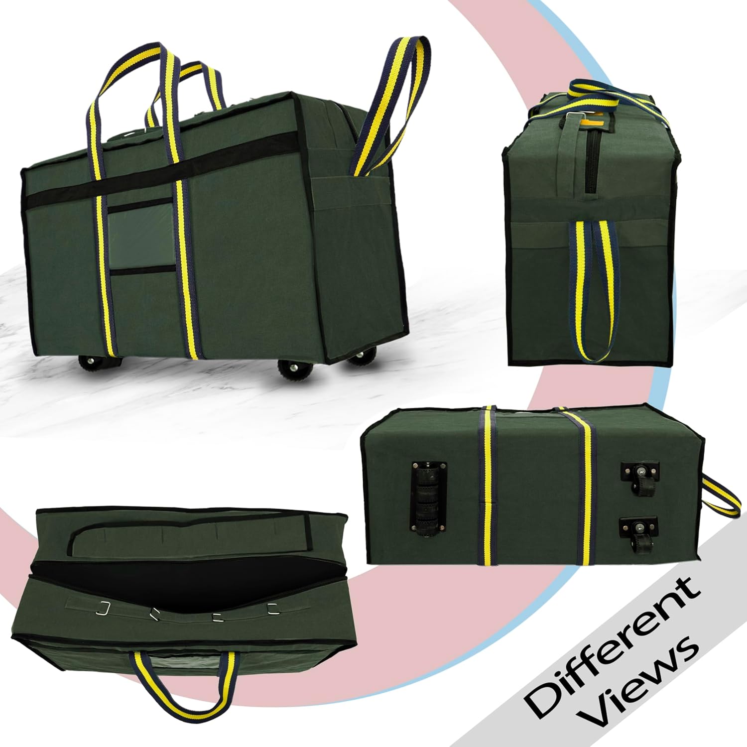 Colour : Olive Green Sturdy and Rugged, Strong Bottom Reinforcement, 6 wheels. Made in India.