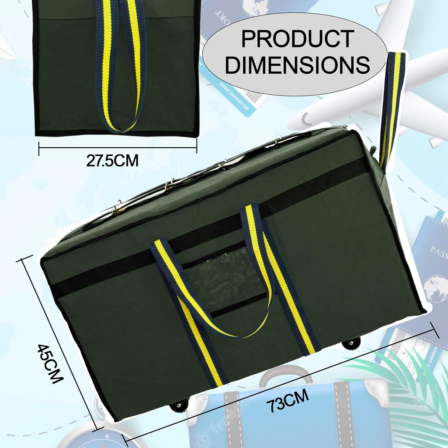 Item Dimensions : Height : 45cm, Width : 27.5cm, Length : 73 Cm , 90.33 Litre (This bag can carry upto 24-26 kg Luggage) ,Water Resistance (but not Waterproof)