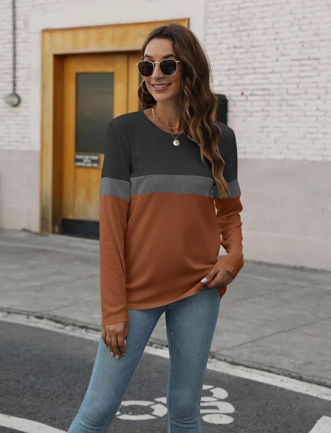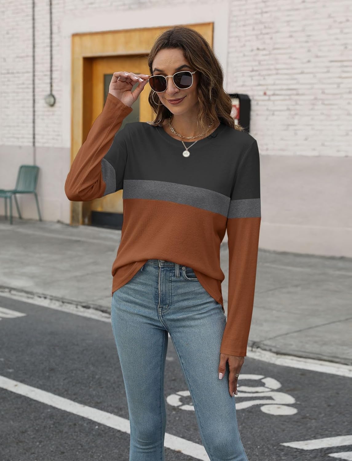 Material:Long sleeve color block tops for womens and teen girls,the fabric of this tops includes cotton,polyester and spandex,comfortable to wear.