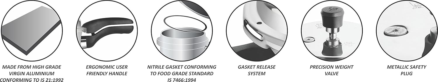 Specially formulated food-grade rubber gasket for longer life; Gasket release system for safety
