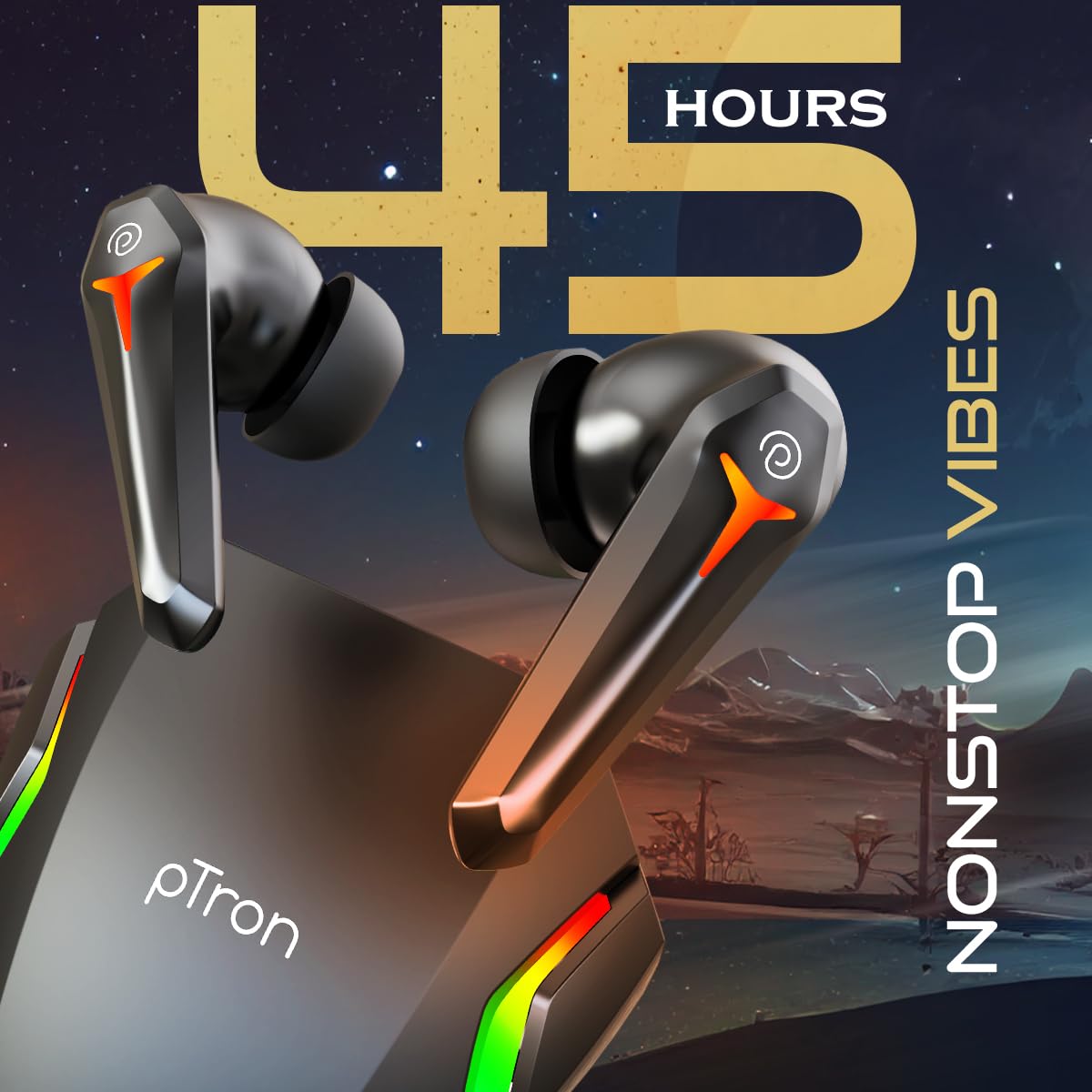 Elevate your audio experience with the pTron Bassbuds Turbo Gaming TWS Earbuds. These earbuds are the perfect fusion of cutting-edge technology and immersive sound. With Bluetooth V5.3, enjoy seamless connectivity and faster pairing, while the TruTalk AI-ENC ensures your voice calls are crystal clear, even in noisy environments. The 13mm dynamic drivers deliver rich, deep bass, making every gaming session and music playlist come alive. Lag-free gaming is guaranteed with AptSense 40ms gaming low-latency technology. The stylish RGB LED light charging case not only looks cool but keeps your earbuds powered up, offering an impressive 45 hours of playtime. Built to withstand the elements, these earbuds are IPX5 water-resistant, perfect for active lifestyles. With a Type-C port fast charging case, they’re always ready for action. Voice assistant support, touch controls, and dual preset equalizers cater to your preferences. Plus, each earbud boasts a built-in HD microphone for clear stereo calls. Unbox an immersive audio experience with 1 pair of earbuds, 1 charging case, 1 Type-C charging cable, 1 User Guide Card, and 2 extra pairs of eartips. With a 1-hour charge time for the earbuds and 1.5 hours for the case, you’re always ready to enjoy your audio journey. 1-Year Manufacturer Warranty From The Date Of Purchase By The End Consumer on Manufacturing Defects Only, Customer Care Details: 040-67138888, Email Id Support@Ptron.In
